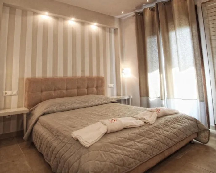 Klima uređaj osigurava da sobe zadrže prijatne temperature. Gosti mogu uživati u pogledu na bazen sa balkona ili terase. Sobe uključuju bračni krevet. Dragocenosti se mogu bezbedno čuvati u sefu. Kuhinja sa frižiderom i aparatom za kafu/čaj takođe je obezbeđena kao standard. Telefon, TV i WiFi (bez dodatne naplate) pružaju sve neophodno za udoban odmor. Kupatila su opremljena tušem i kadom, kao i fenom za kosu. Za dodatnu udobnost u kupatilima, gostima su ponuđeni kozmetički proizvodi. Hotel ima porodične sobe i sobe za nepušače.