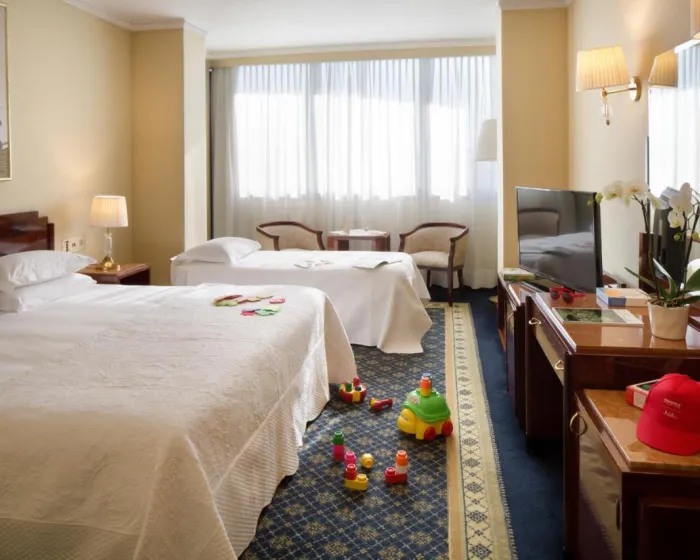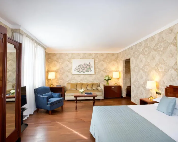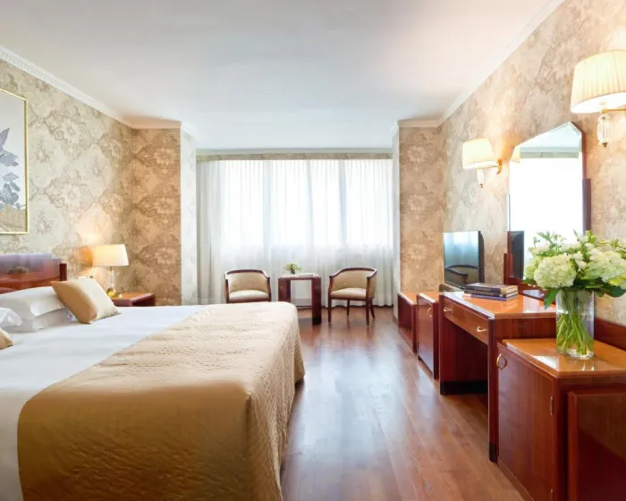 Sobe su opremljene klima uređajem i centralnim grejanjem. Sobe imaju bračni krevet i sofu. Dodatni kreveti se mogu zatražiti. Takođe su dostupni sef, mini bar i radni sto. Dodatni sadržaji uključuju mini frižider i čaj/kafa stanicu. Takođe su obezbeđeni direktan telefonski poziv, satelitska televizija i WiFi. Papuče su uključene. Kupatila su opremljena tušem i bideom, kao i fenom za kosu. Za dodatnu udobnost u kupatilima, gostima se nude kozmetički proizvodi. Mogu se rezervisati sobe prilagođene za invalide. Hotel ima porodične sobe i sobe za nepušače.