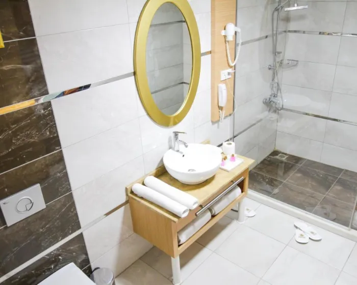 Air conditioning and central heating ensure that rooms maintain comfortable temperatures. A balcony is included as standard in some rooms. The rooms have a double bed and a sofa bed. Extra beds can be requested. A safe and a minibar are also available. Additional features include a mini fridge and a tea/coffee station. A telephone, a TV and WiFi (no extra charge) provide all the essentials for a comfortable holiday. Bathrooms are equipped with a shower and a bathtub, as well as a hairdryer. As an extra convenience, bathrooms provide cosmetic products. The hotel has family rooms and non-smoking rooms.