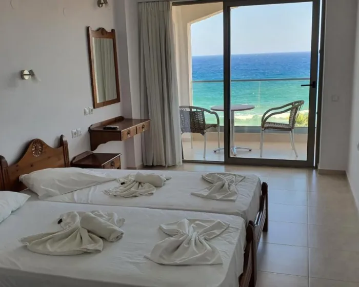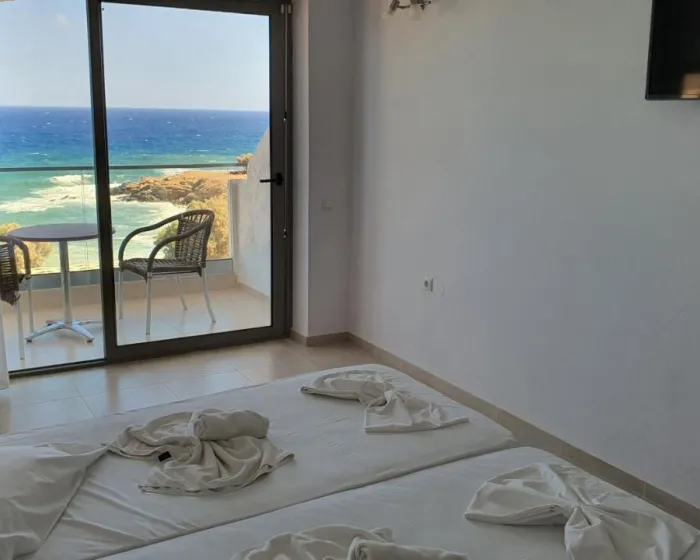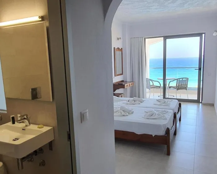 Sobe uključuju klimu i centralno grejanje. Gosti mogu uživati u pogledu na more sa balkona ili terase. Sobe imaju bračni krevet i sofu. Dodatni kreveti se mogu zatražiti. Sef pruža siguran smještaj za ličnu imovinu gostiju. Telefon, TV, radio i WiFi (bez dodatne naknade) obezbeđuju optimalnu udobnost. Kupatila su opremljena tušem i kadom, kao i fenom za kosu. Hotel ima sobe za nepušače.