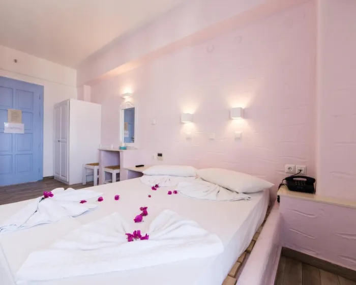 Sobe su opremljene klima uređajem i centralnim grejanjem. Gosti mogu da se opuste i uživaju u pogledu na more sa terase ili privatnog terase nekih soba. Sobe imaju bračni krevet ili sofu. Dostupne su odvojene spavaće sobe. Dodatni kreveti mogu biti zatraženi. Sef, minibar i radni sto su takođe dostupni. Kuhinjica dolazi sa frižiderom. Set za peglanje je obezbeđen radi praktičnosti gostiju. Takođe su obezbeđeni telefon, TV i WiFi (bez dodatnih troškova). Kupatila su opremljena tušem i kadom, kao i fenom za kosu. Kozmetički proizvodi i izbor peškira pružaju dodatnu udobnost u kupatilima. Porodične sobe su dostupne za roditelje sa decom.