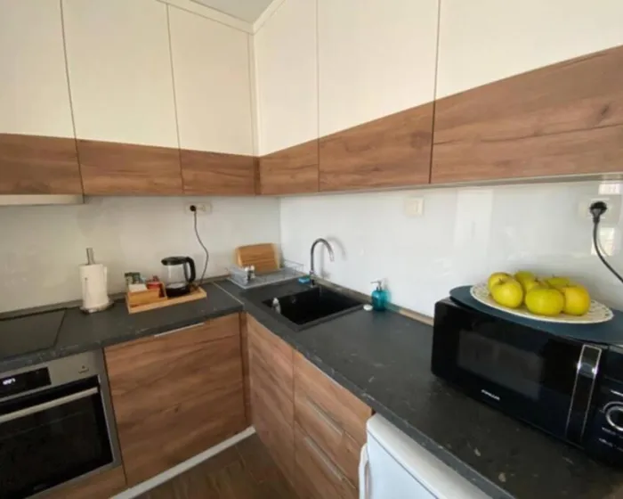 Apartman ima 1 spavaću sobu, 1 kupatilo, posteljinu, peškire, TV sa ravnim ekranom, trpezariju, potpuno opremljenu kuhinju i terasu sa pogledom na grad. Radi veće privatnosti, smeštaj ima privatni ulaz i obezbeđen je celodnevnim obezbeđenjem.