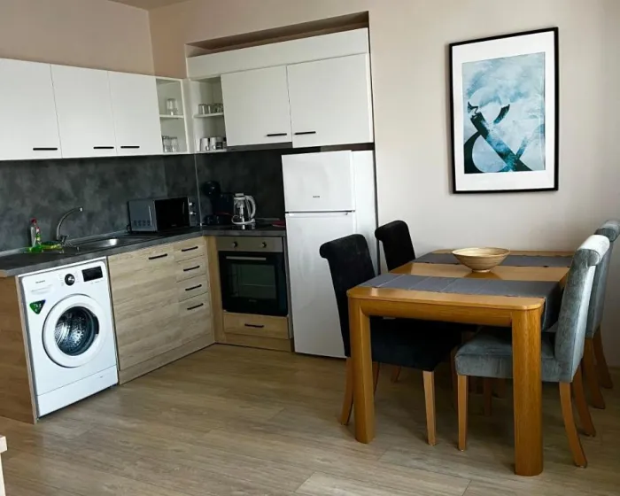 Apartman gostima pruža terasu, prostor za sedenje, kablovsku ravnu TV, potpuno opremljenu kuhinju sa rernom i mikrotalasnom, kao i privatno kupatilo sa tušem i papučama. Frižider, šporet i posuđe su takođe dostupni, kao i aparat za kafu i čajnik. U apartmanskom kompleksu, svaka jedinica ima posteljinu i peškire.
