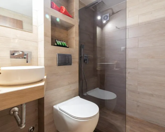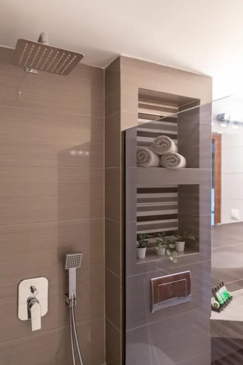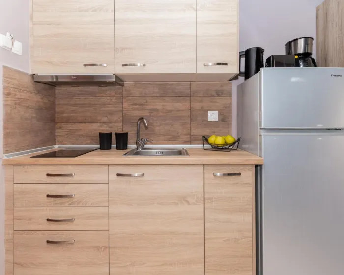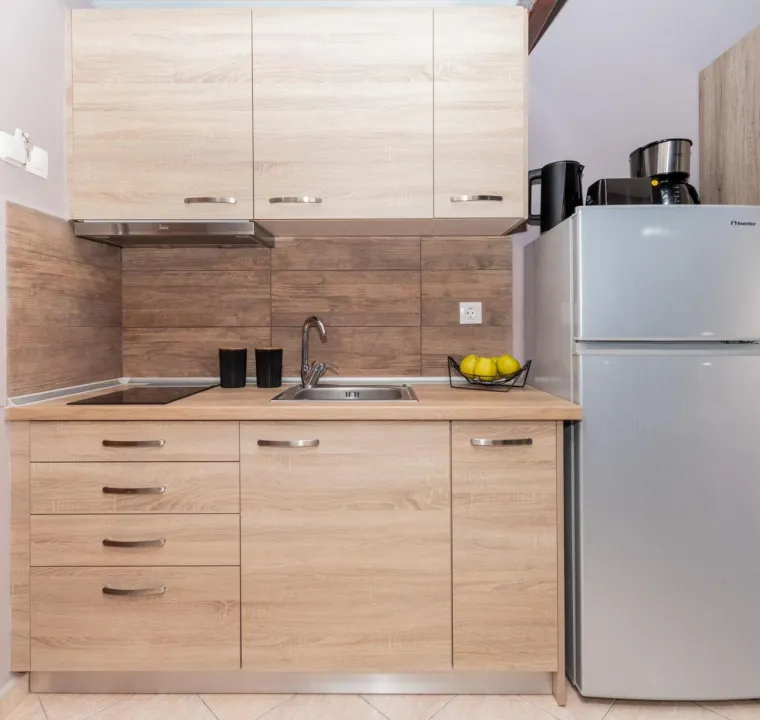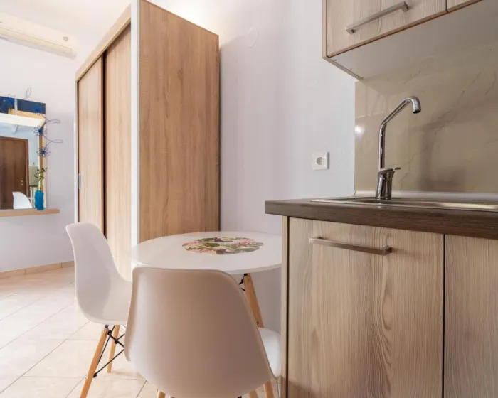 Sve smeštajne jedinice imaju balkon sa pogledom na planinu, satelitsku flat screen televiziju, potpuno opremljenu kuhinju i sopstveno kupatilo sa tušem, fenom za kosu i papučama. Pojedine jedinice imaju terasu ili popločano dvorište sa pogledom na more ili grad. Posteljina i peškiri su obezbeđeni za sve goste.