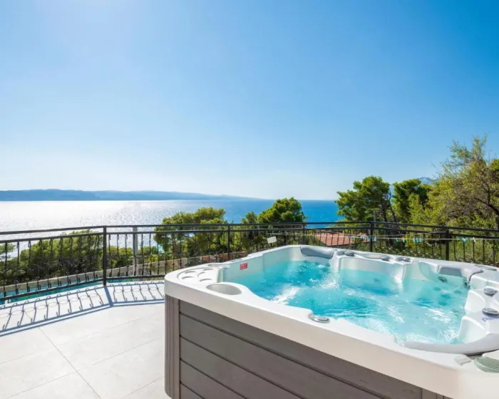 Nalazi se u Baškoj Vodi, Impresivna kuća u Brelima pruža smeštaj sa privatnim bazenom i pogledom na more. Ovaj objekat na plaži nudi besplatan WiFi i besplatan privatni parking. Objekat je za nepušače i nalazi se na manje od 1 kilometra od plaže Podluka.