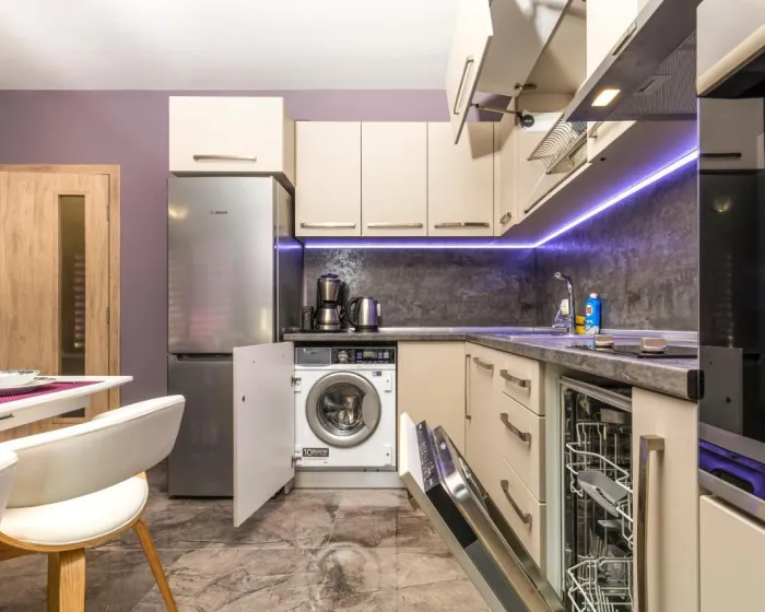 Ovaj stan ima 1 spavaću sobu, kuhinju sa mašinom za pranje sudova i rernom, flat-screen TV, dnevnu sobu i 1 kupatilo sa tušem. Peškiri i posteljina su obezbeđeni u apartmanu.
