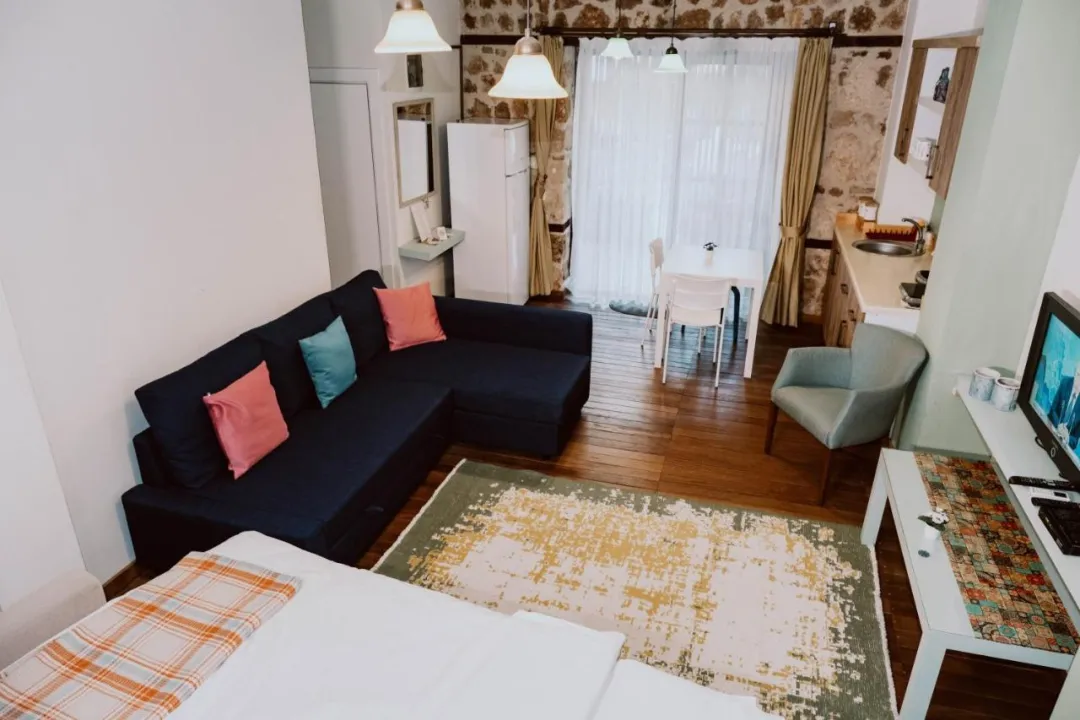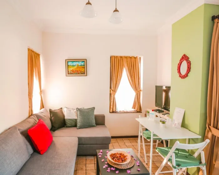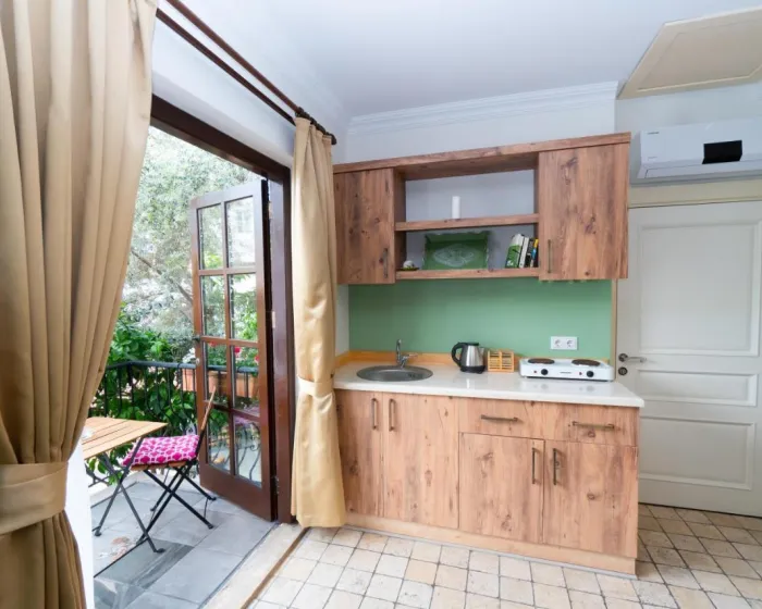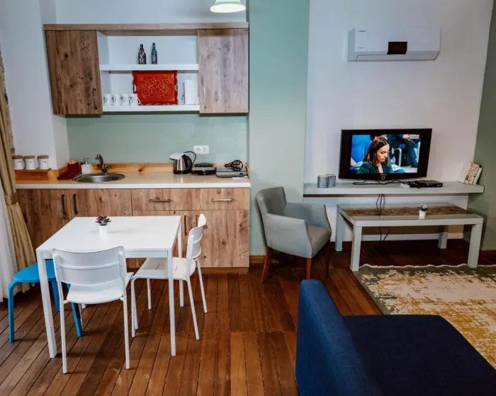 Sobe imaju dnevnu sobu, kuhinju i kupatilo. Klima uređaj i centralno grejanje obezbeđuju udobnu temperaturu u zatvorenom prostoru. Gosti mogu uživati u pogledu na vrt sa balkona ili terase. Sobe imaju bračni krevet ili sofu. Dostupne su odvojene spavaće sobe. Krevetići za decu mogu se zatražiti za mlađe goste. Radni sto je dostupan. Svi kuhinjski pribori dolaze sa frižiderom i aparatom za čaj/kafu. Dodatni sadržaji uključuju veš mašinu i set za peglanje. Telefon, TV i WiFi (bez dodatne naplate) pružaju sve potrebno za udoban odmor. Kupatila uključuju fen za kosu i opremljena su tuš kabinom i kadom. Za dodatnu udobnost u kupatilima, gostima se nude kozmetički proizvodi. Apartmanski hotel ima porodične sobe i sobe za nepušače.
