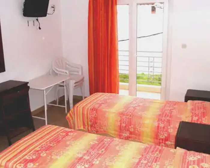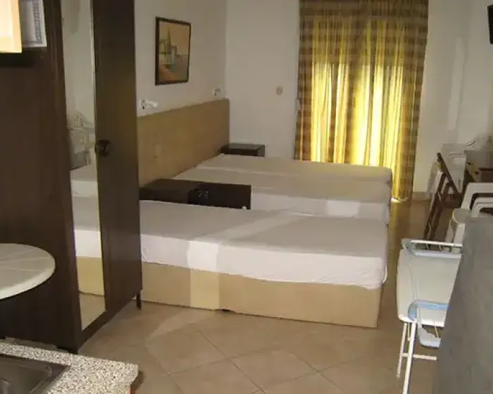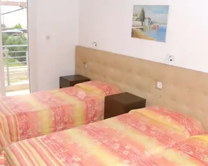 Sula Leptokarija se nalazi na oko 190 metara udaljenosti od plaže. Smeštena je u mirnom delu letovališta Leptokarija. U ponudi ima dvokrevetne i trokrevetne studije koji se nalaze u prizemlju i na prvom spratu. Postoji mogućnost parkiranja u dvorištu vile.Korišćenje klima-uredjaja se doplaćuje 3€ dnevno.