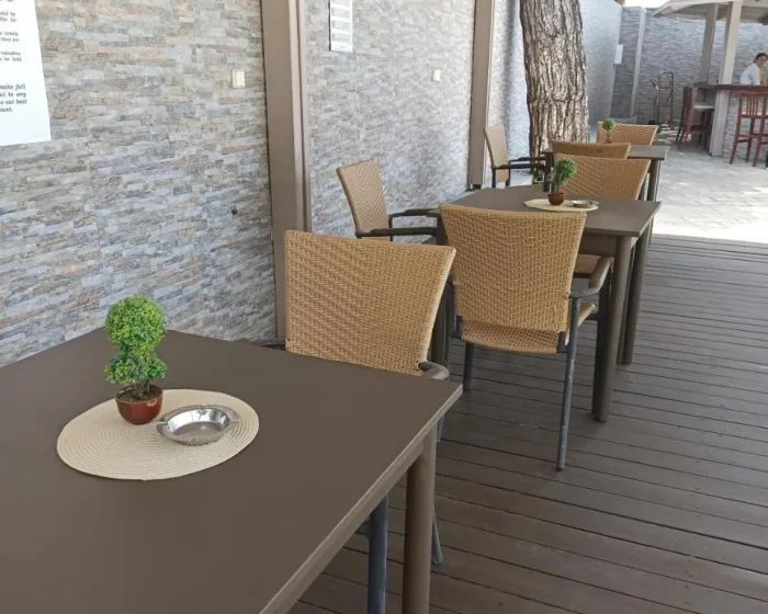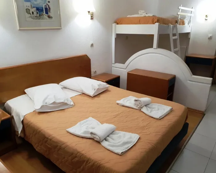 Sobe imaju kuhinju i kupatilo. Air conditioning obezbeđuje prijatnu temperaturu. Gosti mogu uživati u pogledu na baštu sa balkona ili terase. U sobama se nalazi bračni krevet, a dečji kreveti i pomoćni ležajevi su dostupni na zahtev. Standardna oprema uključuje frižider. Na raspolaganju su i telefon sa direktnim biranjem, televizor sa satelitskim/kablovskim kanalima, radio i WiFi bez doplate. Kupatila su opremljena tušem i kadom. Hotel nudi porodične i sobe za nepušače.