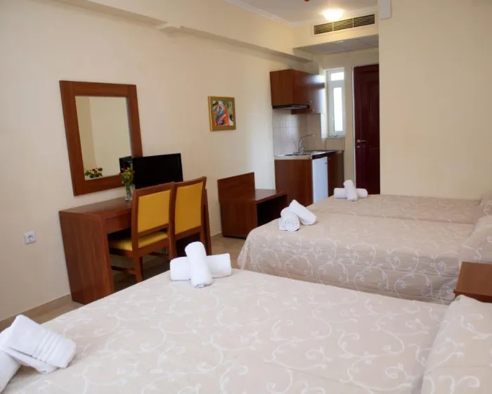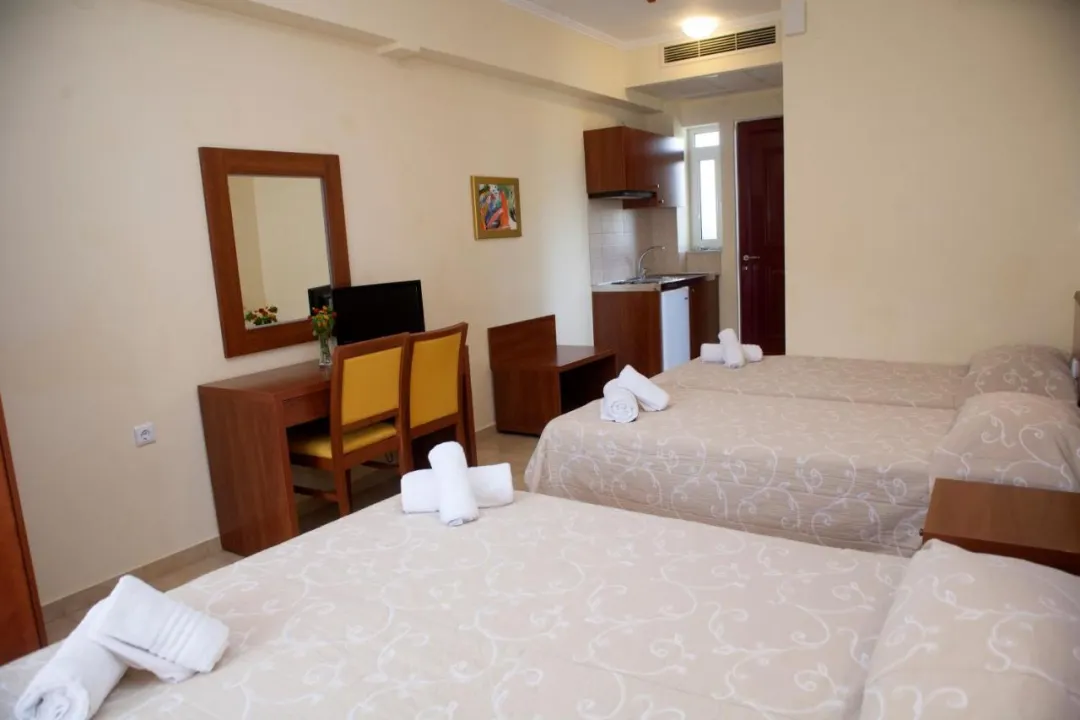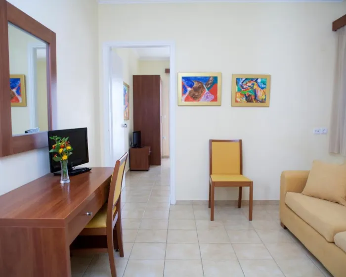 Sobe su opremljene klima uređajem i centralnim grejanjem. Neke sobe imaju balkon. Sobe imaju bračni krevet i kauč na razvlačenje. Dostupne su odvojene spavaće sobe. Dodatni kreveti mogu biti zatraženi. Sef obezbeđuje sigurno čuvanje lične imovine gostiju. Kuhinjica dolazi sa frižiderom, mini frižiderom i rešoom za kuvanje. Telefon, TV i WiFi (bez dodatne naknade) obezbeđuju optimalnu udobnost. Kupatila su opremljena tušem i kadom, kao i fenom za kosu. Kao dodatna pogodnost, kupatila obezbeđuju kozmetičke proizvode. Takođe je moguće rezervisati pristupačne sobe za osobe u invalidskim kolicima. Hotel ima porodične sobe i sobe za nepušače.