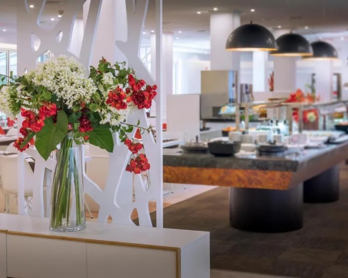 Sadržaji za jelo uključuju trpezariju, kafić i bar. Gosti mogu ručati u ugodnoj atmosferi u restoranu (za nepušače i švedski sto). Opcije ishrane uključuju polupansion, pun pansion i sve uključeno. Gosti očekuje ukusan i raznovrstan švedski sto za doručak, ručak i večeru. Obroci za dijetu, bezglutenski obroci, vegetarijanska jela i veganska hrana mogu se pripremiti na zahtev. Hotel takođe nudi posebne opcije ishrane. Pecenje hrane je posebno privlačna atrakcija. Hotel nudi izbor alkoholnih i bezalkoholnih pića.