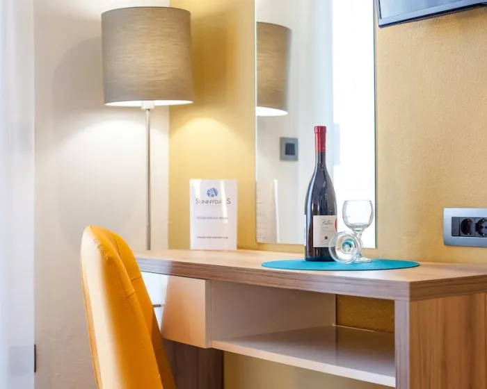 Air conditioning and central heating ensure that rooms maintain comfortable temperatures. A balcony is included as standard in some rooms. Rooms have a double bed or a sofa bed. Separate bedrooms are available. Children's beds and extra beds can be requested for younger guests. A safe provides secure storage for guests' personal property. The kitchenette comes with a refrigerator and a tea/coffee station. A direct dial telephone, a TV, a radio and WiFi are provided as well. A hairdryer and a vanity mirror are available in the bathrooms, which are equipped with a shower and a bathtub. The hotel has family rooms and non-smoking rooms.