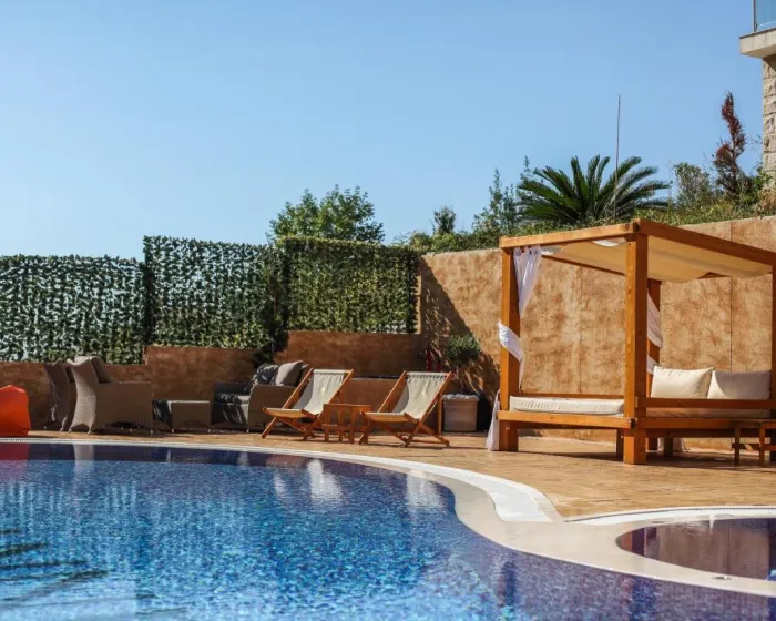 Ovaj apartmanski hotel se nalazi u Bečićima, direktno na plaži.