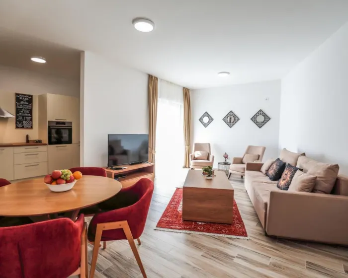 Sobe su opremljene klima uređajem, centralnim grejanjem i ventilatorom. Sobe imaju bračni krevet ili kauč na razvlačenje. Takođe su dostupni sef i radni sto. Kuhinja sa frižiderom i aparatom za kafu/čaj takođe je standardno obezbeđena. Ostala dostupna pogodnosti uključuju veš mašinu i set za peglanje. Takođe su obezbeđeni televizor sa satelitskim/kablovskim kanalima i WiFi (bez dodatnih troškova). Kupatila su opremljena tuš kabinom i fenom za kosu. Kozmetički proizvodi i selekcija peškira pružaju dodatnu udobnost u kupatilima. Porodične sobe su dostupne za roditelje sa decom.