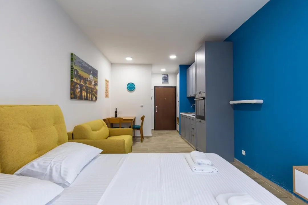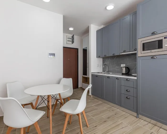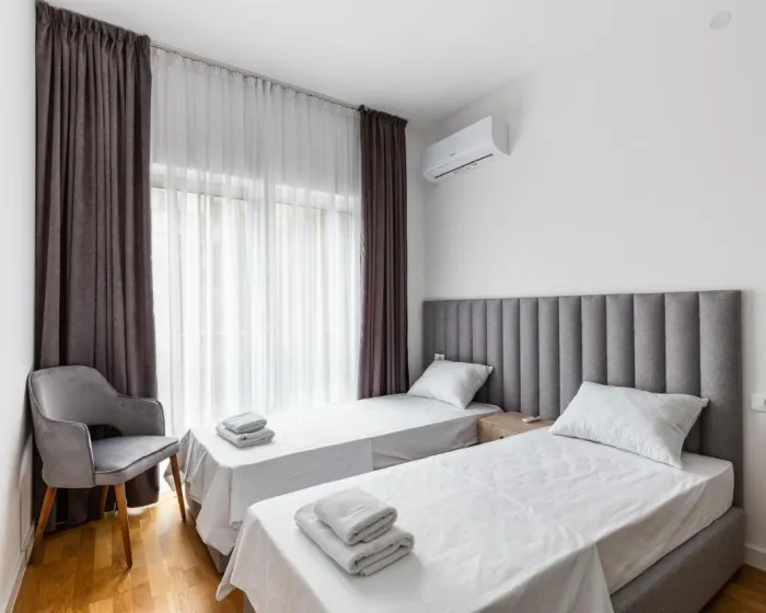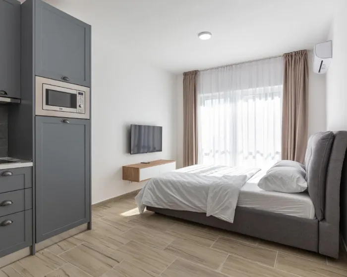 Neki apartmani u aparthotelu imaju zaseban ulaz i opremljeni su radnim stolom i spoljnom nameštaju. Neki apartmani su opremljeni klima uređajem, flat-screen TV-om, veš mašinom i aparatom za kafu, kao i potpuno opremljenom kuhinjom. U aparthotelu, jedinice uključuju privatno kupatilo.