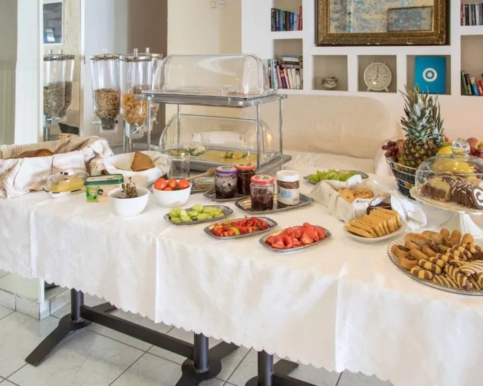 Olympia Beach Hotel se nalazi direktno na plaži, samo je odvojen šetalištem pored vode, oko 20 kilometara udaljen od aerodroma Aristarh