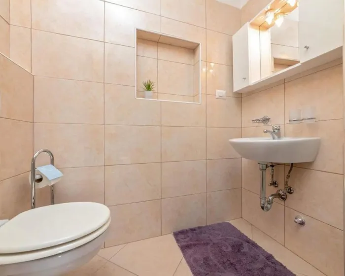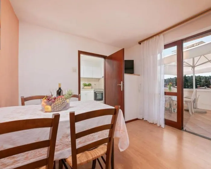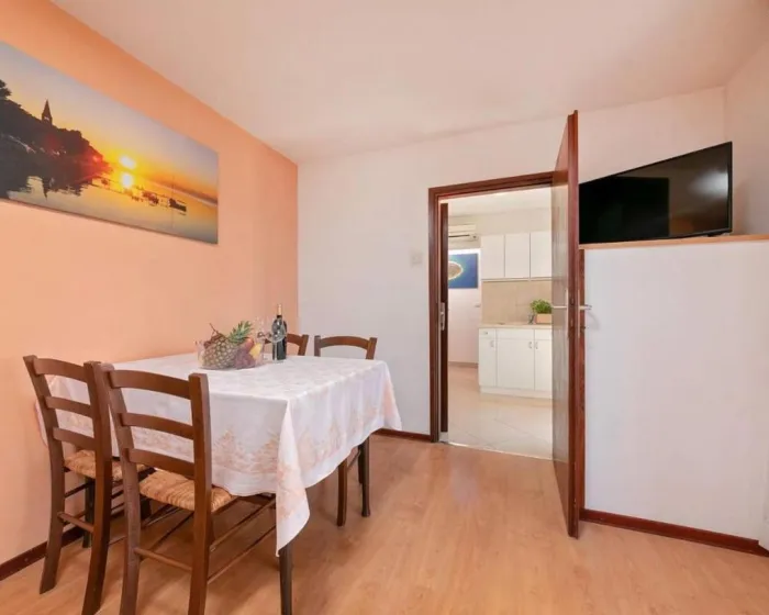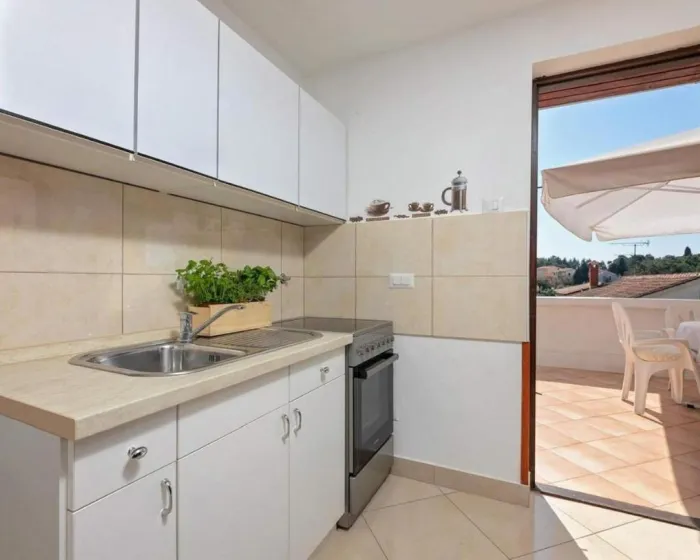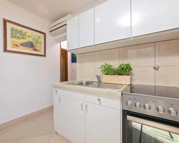 Klimatizovan apartman sastoji se od 1 odvojene spavaće sobe, potpuno opremljene kuhinje sa rernom i frižiderom i 1 kupatila. Radi veće privatnosti, smeštaj ima poseban ulaz.