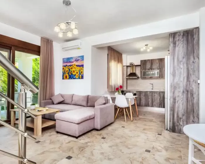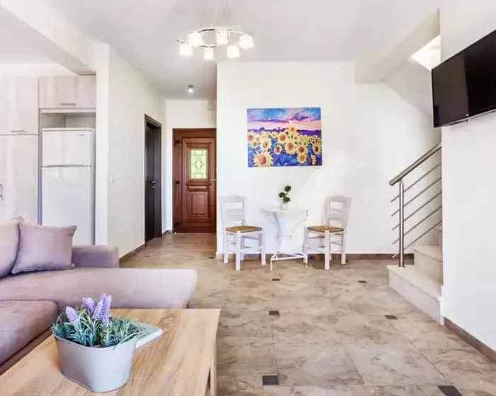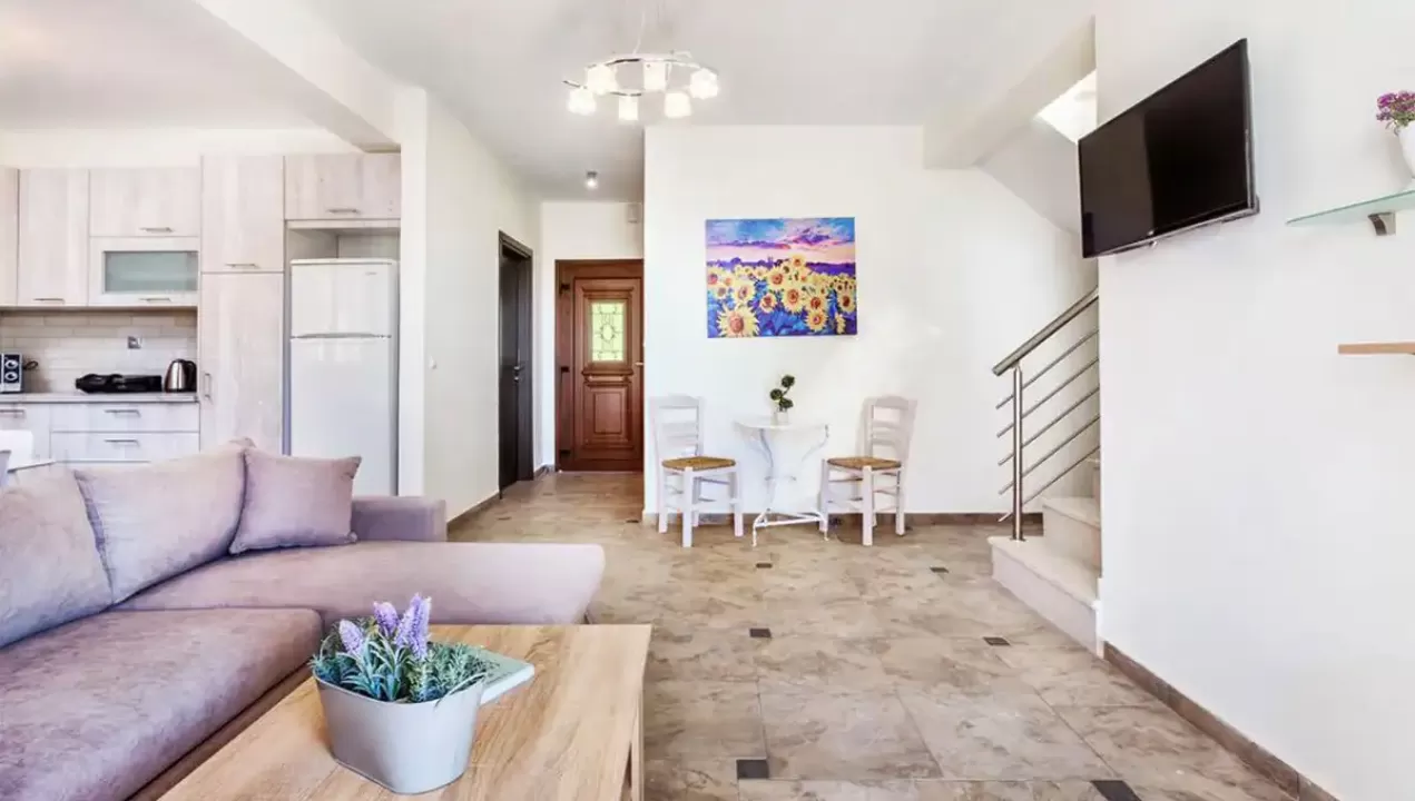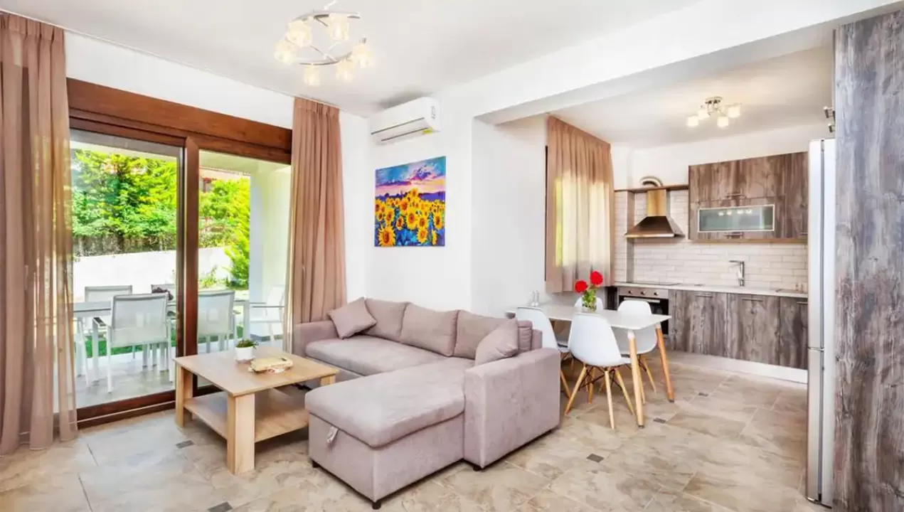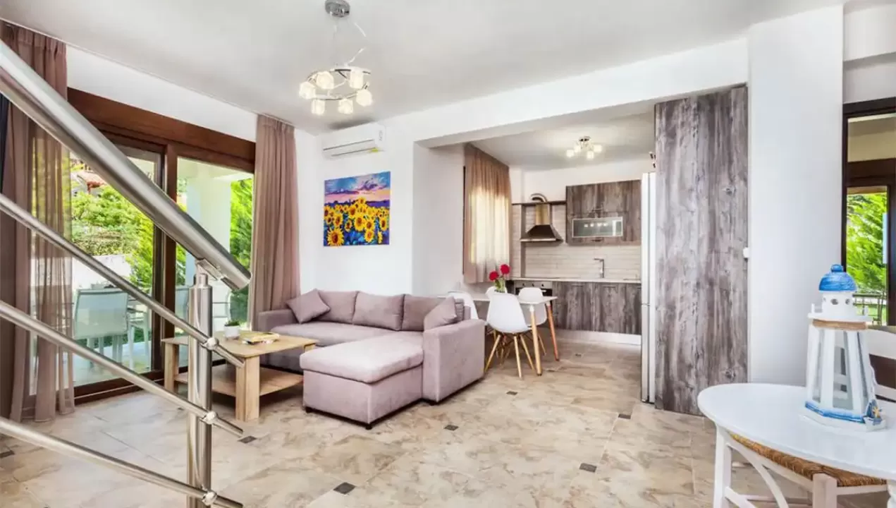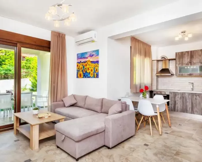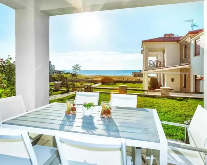 Sunset Villas Possidi je kompleks vrlo luskuznih vila novijeg datuma gradnje, izgradjenih u prvoj liniji do mora, na samoj peščanoj plaži, nagradjenoj plavom zastavicom. Poznati peščani sprud Possidija je na samo par kilometara južnije, a nedaleko je i centar malog turstičkog mesta Possidi, gde se mogu naći prodavnica, kao i broj vrlo kvalitetnih grčkih taverni, poredjanih po uredjenom šetalištu mesta. Sunset Villas Possidi vile definitivno preporučujemo parovima koji žele da letuju zajedno, u vrlo luksuznom smeštaju, na samoj plaži. Preporuka agencije.
