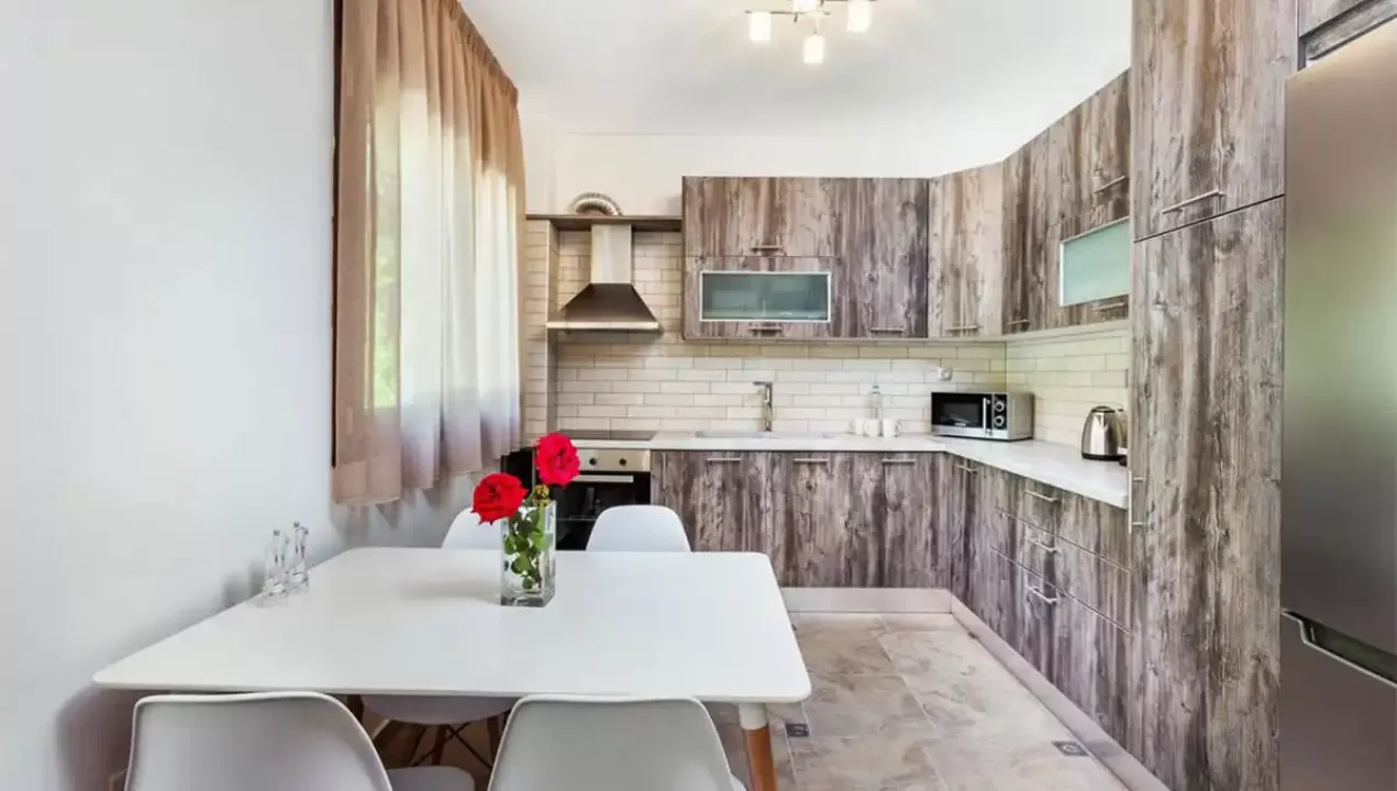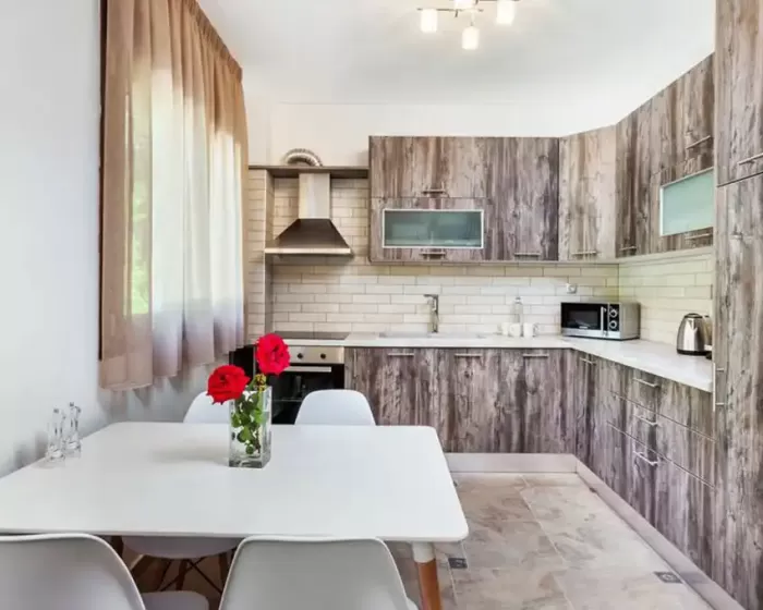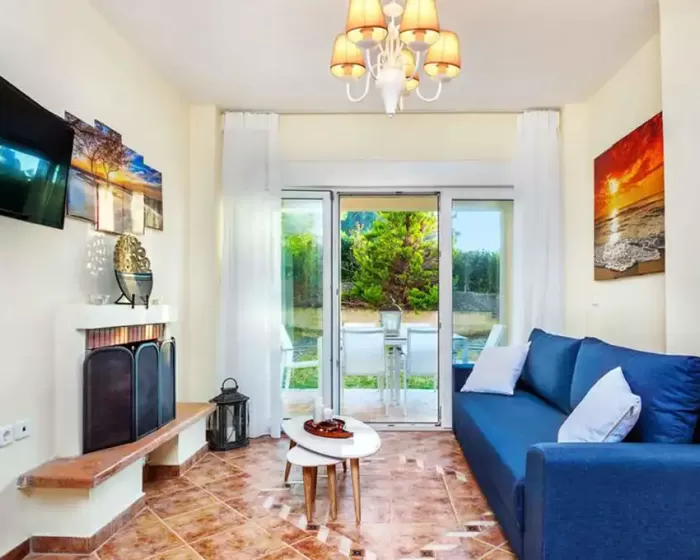 jedno kupatilo, fen, kamin, dobro opremljena kuhinja, aparat za kafu, toster, mikrotalasna, pegla i daska za peglanje, klima-uredjaj, LCD SAT-TV, tri do četiri spavaće sobe, bašta, terasa sa garniturom za sedenje, wifi