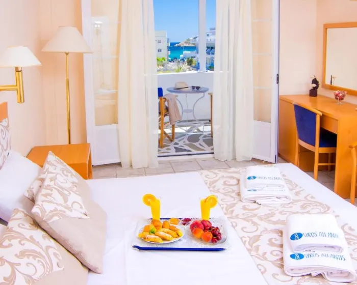 Hotel sa toplom dobrodošlicom gostima nalazi se na ostrvu Siros, lociran neposredno uz plažu malenog letovališta. Ljubazno osoblje recepcije uvek je na raspolaganju za sva pitanja. U ponudi su ostava za prtljag i sef, a bežični internet je dostupan u zajedničkim prostorijama. Turistički desk pruža pomoć pri rezervaciji izleta. Hotel raspolaže sadržajima prilagođenim osobama sa invaliditetom, kao i liftom i pristupima za kolica. Za ljubitelje filma tu je bioskopska sala. U prelepom vrtu gosti mogu da se opuste i uživaju. Dodatne pogodnosti uključuju TV salu i biblioteku. Gostima koji dolaze sopstvenim prevozom na raspolaganju su garaža ili parking (bez doplate). Usluge uključuju čuvanje dece, iznajmljivanje automobila, lekarsku pomoć, transfer, poslugu u sobi, buđenje, pranje veša, frizerski salon, samouslužnu perionicu i hotelski šatl. Aktivni gosti mogu iznajmiti bicikl i istražiti okolinu.