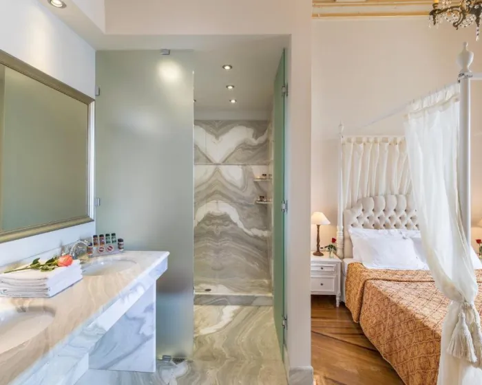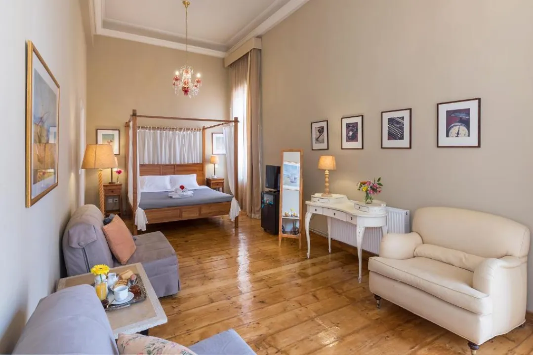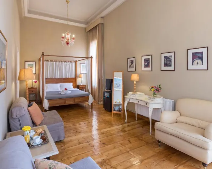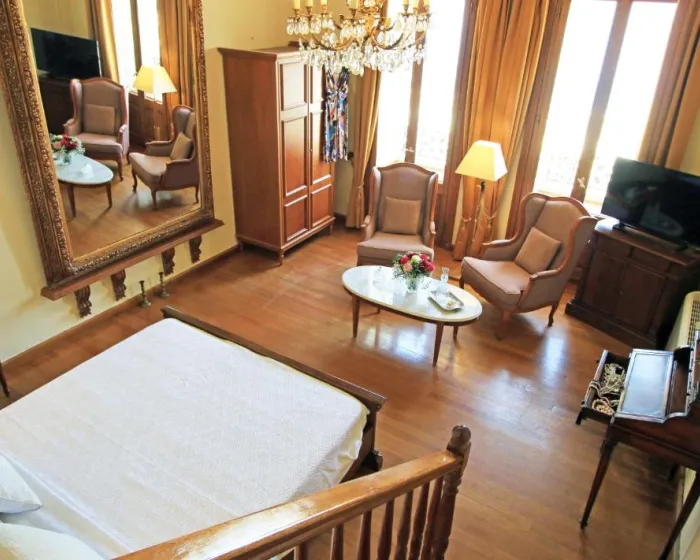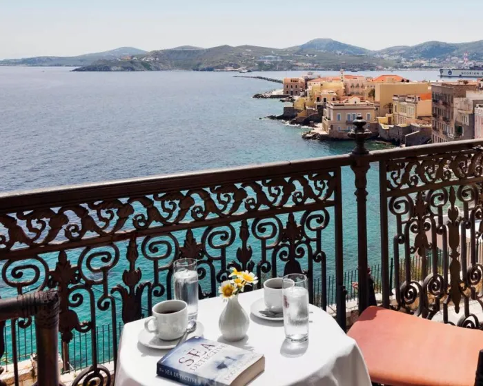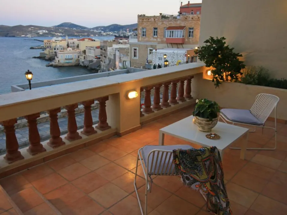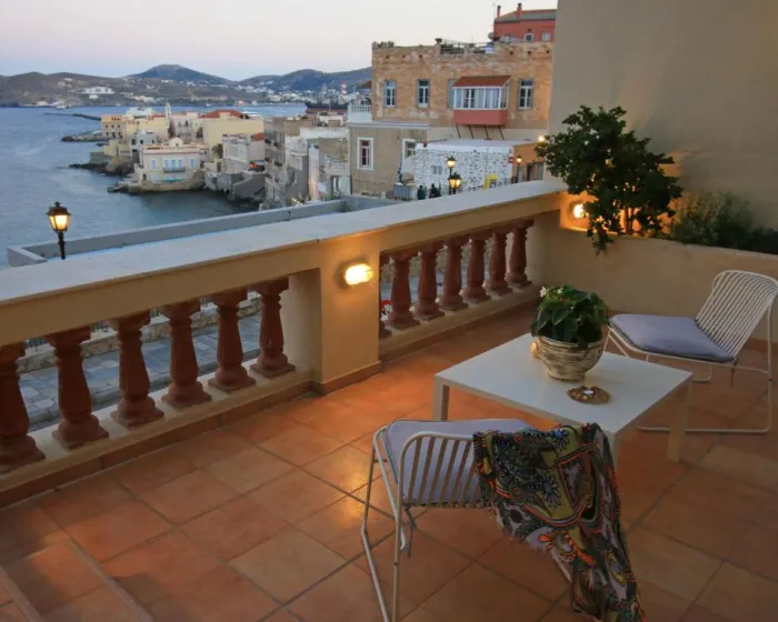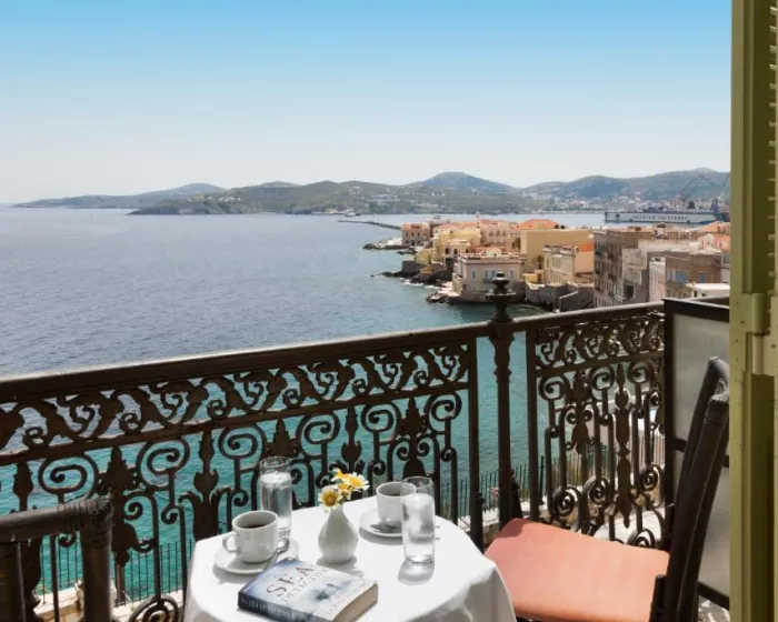 Syrou Melathron hotel dočekuje goste u Ermupolisu. Gostima je na raspolaganju lift i recepcija. Vrednosti se mogu bezbedno odložiti u sefu. Bežični internet je dostupan u zajedničkim prostorijama. Turistički desk nudi pomoć pri organizaciji izleta. Dodatne pogodnosti uključuju TV salu. Parking je obezbeđen za goste koji dolaze sopstvenim prevozom. Usluge takođe obuhvataju 24-časovno obezbeđenje, iznajmljivanje automobila, medicinsku pomoć, prevoz, poslugu u sobi, uslugu pranja veša i korišćenje samouslužne perionice. Usluga iznajmljivanja bicikala omogućava samostalno istraživanje okoline. Faks aparat je dostupan za poslovne potrebe.