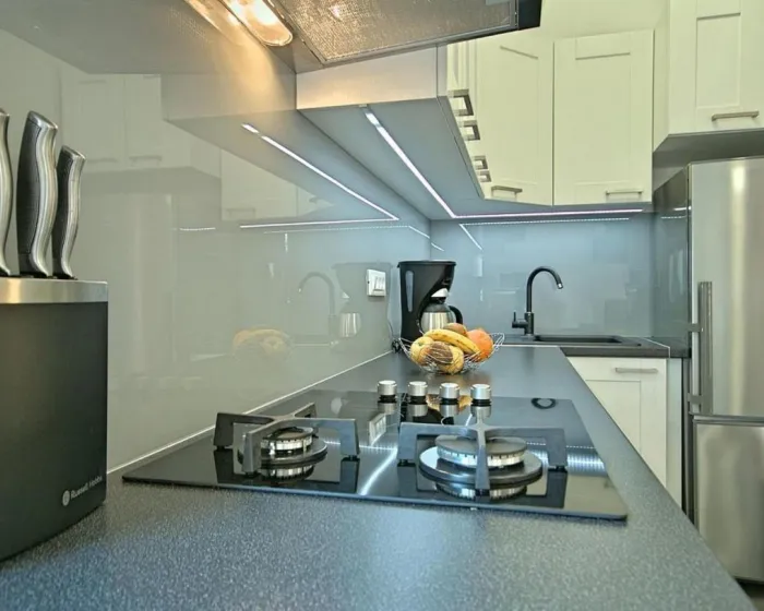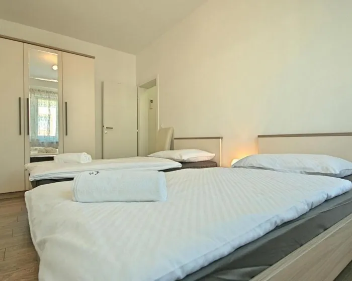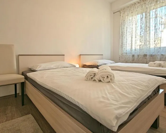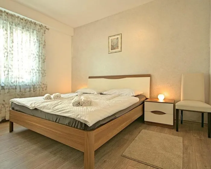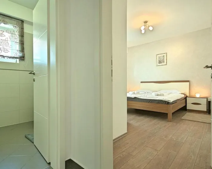 Prostrani apartman ima 2 spavaće sobe, potpuno opremljenu kuhinju sa mašinom za pranje sudova i rernom, kao i 1 kupatilo sa tušem. Za dodatnu privatnost, smeštaj poseduje privatni ulaz.