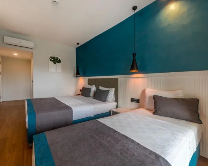 Klima uređaj i centralno grejanje osiguravaju da sobe održavaju udobne temperature. Gosti mogu opustiti i uživati u pogledu na more sa balkona ili privatne terase nekih soba. Sobe imaju bračni krevet ili krevet queen size. Dodatni kreveti mogu biti zatraženi. Sef i mini bar su takođe dostupni. Direktno biranje telefonom, televizor sa satelitskim / kablovskim kanalima i WiFi pružaju sve neophodno za udoban odmor. Fen za kosu i telefon se nalaze u kupatilima, koja uključuju tuš i kadu. Za dodatnu udobnost u kupatilima, gostima se nude kozmetički proizvodi. Hotel ima porodične sobe, sobe za nepušače i sobe za pušače.