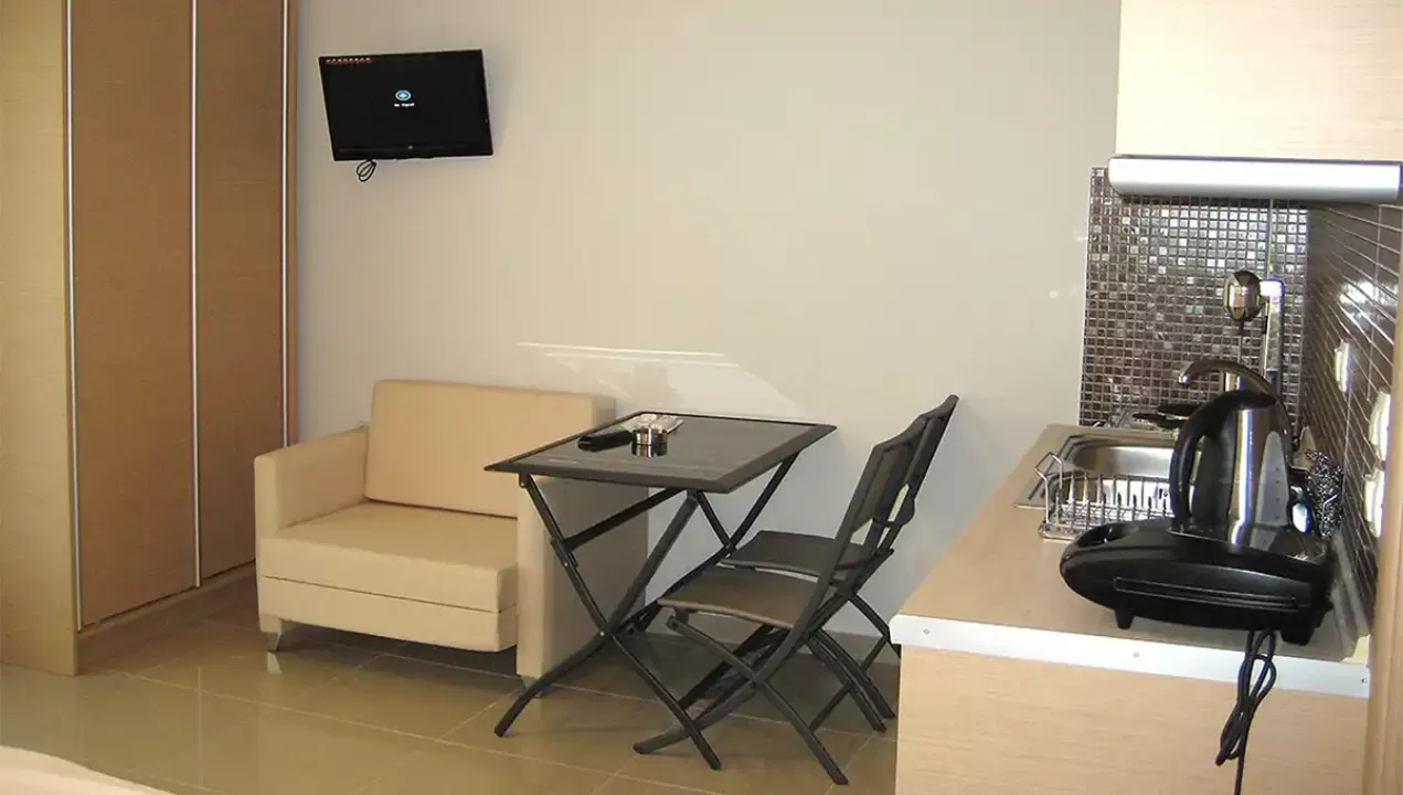 kupatilo, fen, peškiri, kuhinja, mini frižider, čajnik, klima-uredjaj, TV, sef, terasa sa garniturom za sedenje