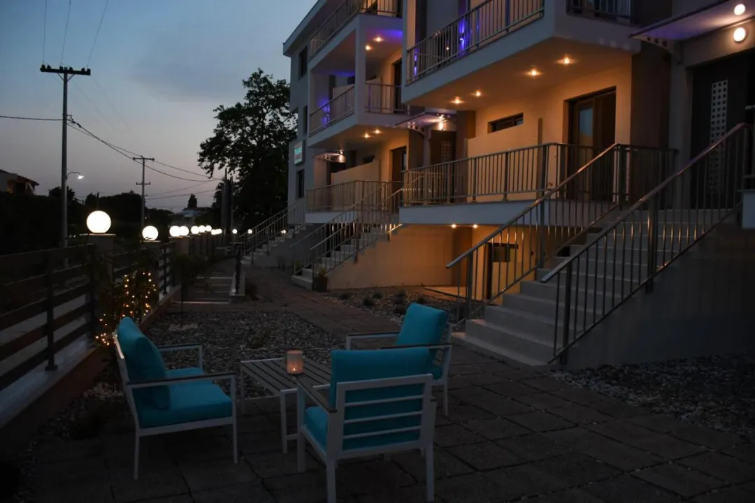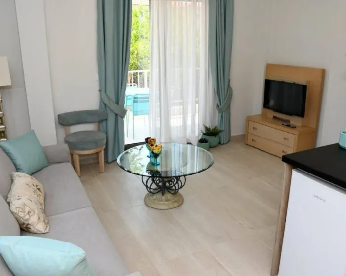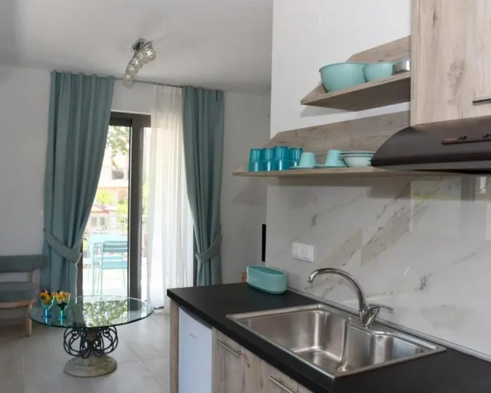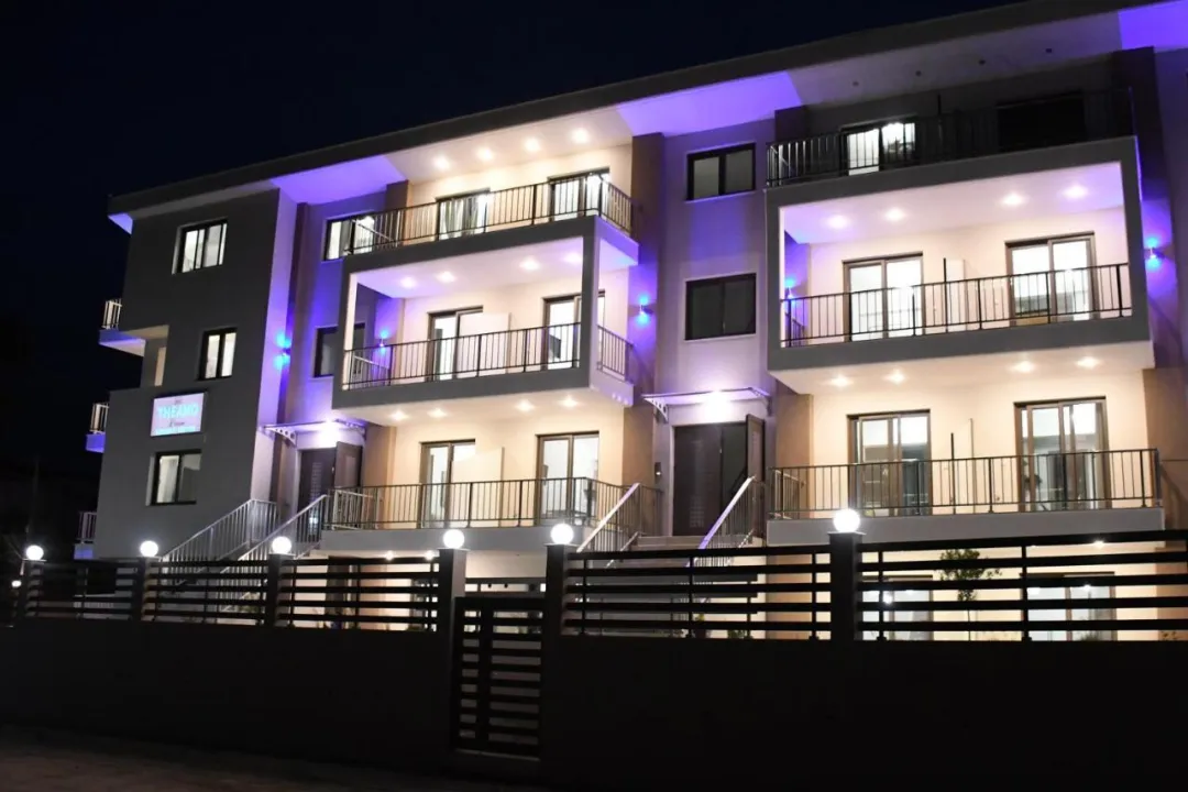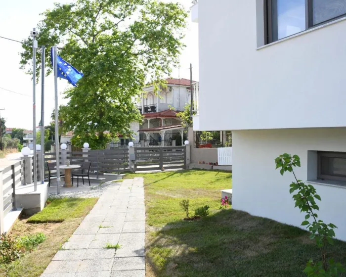 Theano Luxury Suites Nikiti se nalazi u centru mesta, od plaže udaljen oko 300 metara, u nedposrenoj blizini svih turistčkih sadražaja koje Nikiti može da šruži svojim posetiocima. Na kraju ulice je i super market Galaxias, a Lidl je na oko 500 metara.