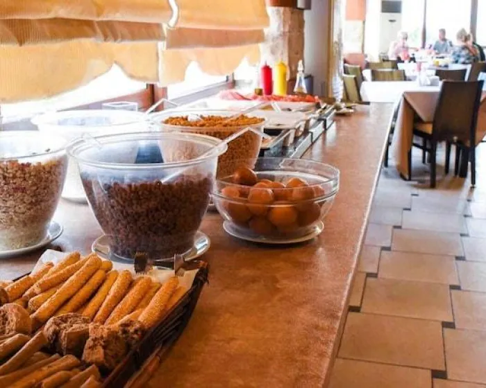 Objedište uključuje trpezariju, sala za doručak, kafić i bar. Neki restorani sa klima uređajem, visokim stolicama i posebnim delom za pušače dostupni su gostima. Opcije ishrane uključuju noćenje sa doručkom, polupansion i sve uključeno. Za doručak i večeru, gosti se služe na obilnom bifeu. Različita jela mogu se naručiti a la carte za ručak i večeru. Dijetna jela, bezglutenska jela, vegetarijanska jela i dečji obroci mogu se pripremiti po zahtevu. Pored toga, dostupne su posebne opcije ishrane i užine. Odmaralište nudi izbor alkoholnih i bezalkoholnih pića.