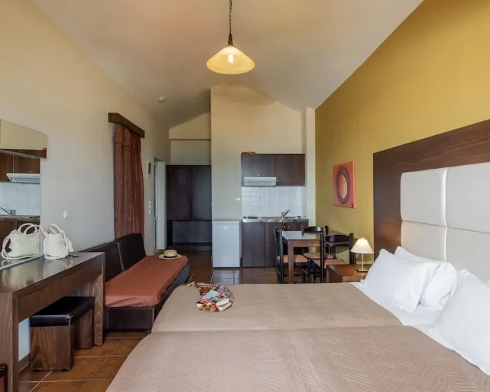 Klima uređaj i individualno podesivo grejanje osiguravaju da sobe održavaju udobnu temperaturu. Gosti mogu opustiti i uživati u pogledu na more sa terase ili privatne terase nekih soba. Sobe imaju krevet queen size i trosed. Dostupne su odvojene spavaće sobe. Krevetići za decu i dodatni ležajevi mogu se zatražiti za mlađe goste. Na raspolaganju su i sef i minibar. Kuhinja je opremljena frižiderom, mini barom i aparatom za čaj/kafu. Pegla je obezbeđena radi gostovog komfora. Direktan telefonski poziv, televizor sa satelitskim/kablovskim kanalima, radio i WiFi su takođe obezbeđeni. Fen za kosu i telefon dostupni su u kupatilima, koja su opremljena tušem i kadom. Kozmetički proizvodi i izbor peškira pružaju dodatnu udobnost u kupatilima. Odmaralište ima porodične sobe i sobe za nepušače.