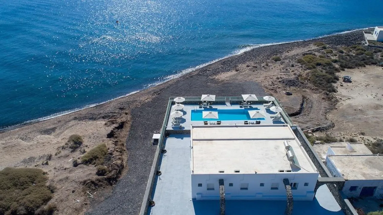 Thirassia Paradise Suites se nalazi na ostrvu Terazija, direktno na plaži, što ga čini idealnim izborom za goste koji žele smeštaj tik uz more i opuštajuću atmosferu.