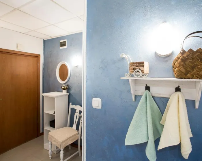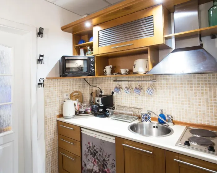 Klimatizovan stan se sastoji od 1 spavaće sobe, dnevnog boravka, potpuno opremljene kuhinje sa rernom i aparatom za kafu, i 1 kupatila sa tuš kabinom i fenom za kosu. Peškiri i posteljina su obezbeđeni u apartmanu. Smještaj je za nepušače.