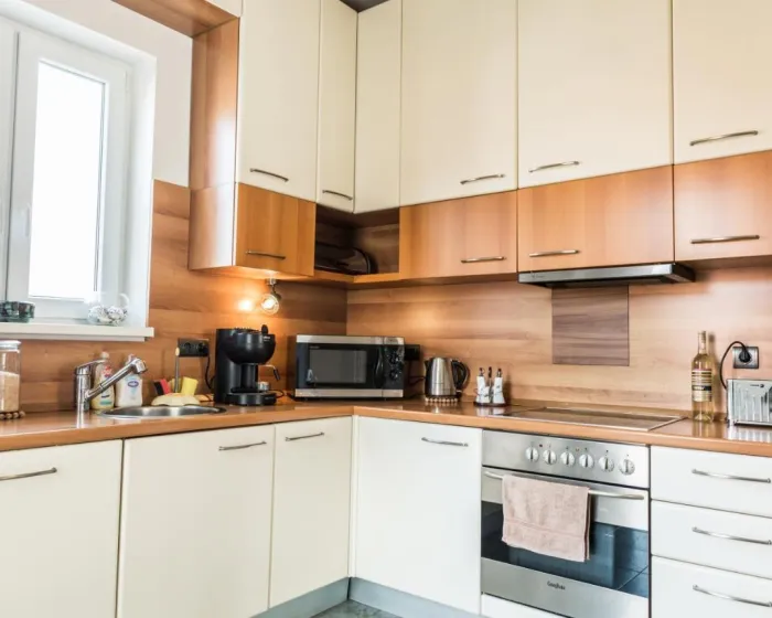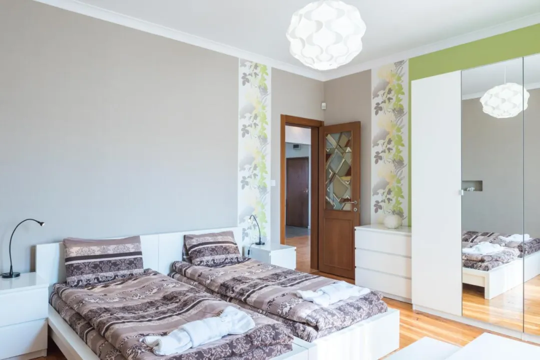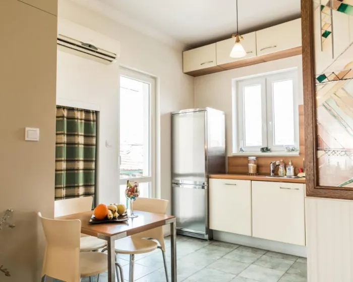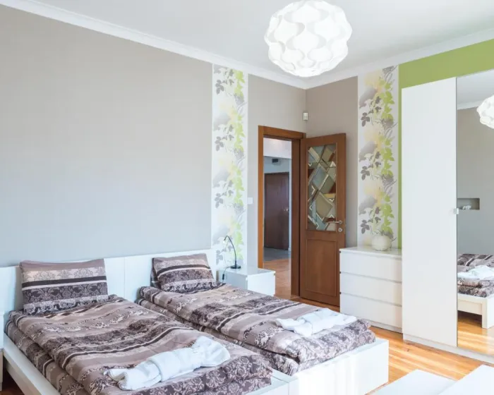 Apartman obuhvata PS2, prostranu kuhinju sa mašinom za pranje sudova, rernom i mikrotalasnom, dnevnu sobu sa prostorom za sedenje i trpezarijskim prostorom, 2 spavaće sobe, i 2 kupatila sa bideom i tušem. Jedinična je zvučno izolovana i sadrži parket podove kao i kamin. Radi dodatne privatnosti, smeštaj ima privatni ulaz i obezbeđen je punodnevnom bezbednošću.