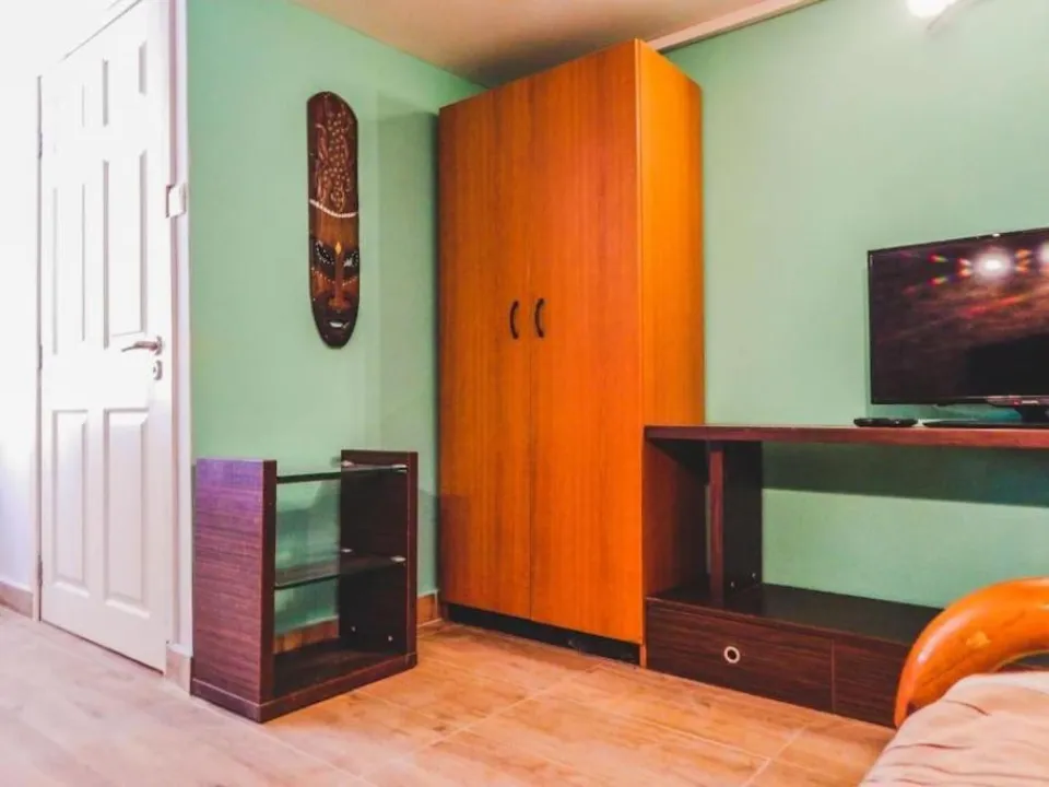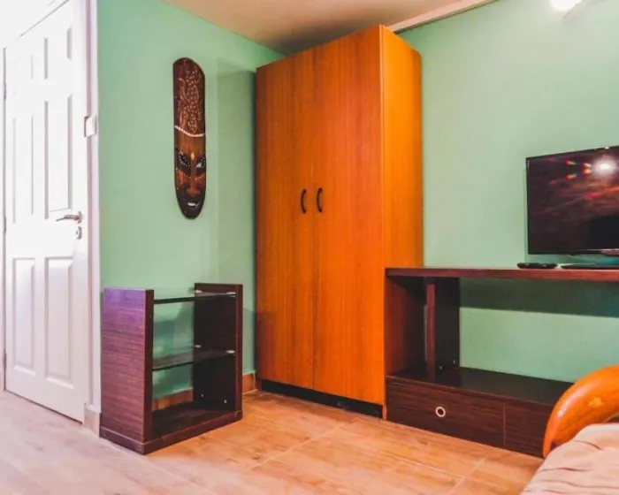 Klimatizovani apartman se sastoji od 1 spavaće sobe, dnevnog boravka, potpuno opremljene čajne kuhinje sa frižiderom i čajnikom, i 1 kupatila sa tušem i fenom za kosu. Peškiri i posteljina su dostupni u apartmanu. Radi dodatne privatnosti, smeštaj ima poseban ulaz.