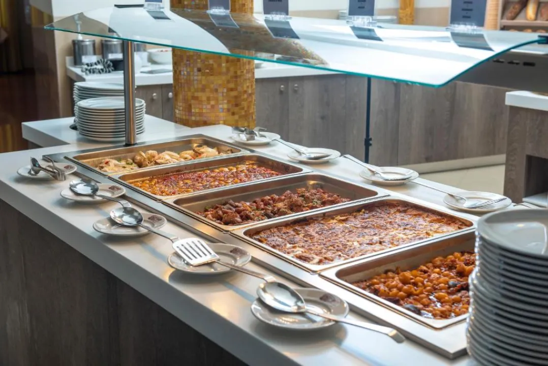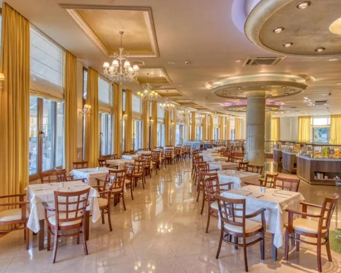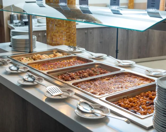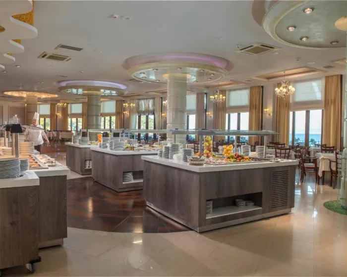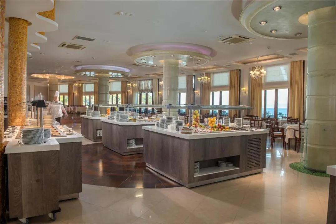 U okviru objekta nalaze se restoran i bar. Osvežavajuća pića se služe i u baru na plaži. Gostima su na raspolaganju opcije ishrane na bazi “all inclusive”. Doručak, ručak i večera uključuju bogat izbor jela. Po zahtevu se pripremaju dijetalna jela, vegetarijanski obroci i dečiji meni. Takođe su dostupni specijalni obroci i užine. U ponudi su i razna alkoholna i bezalkoholna pića.