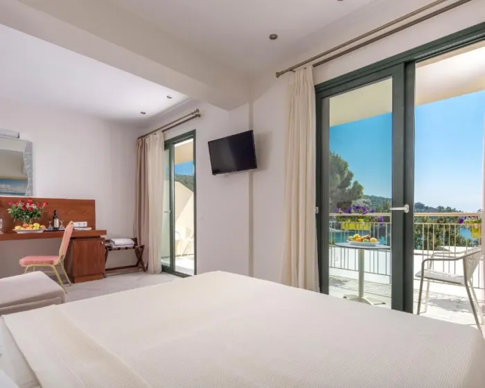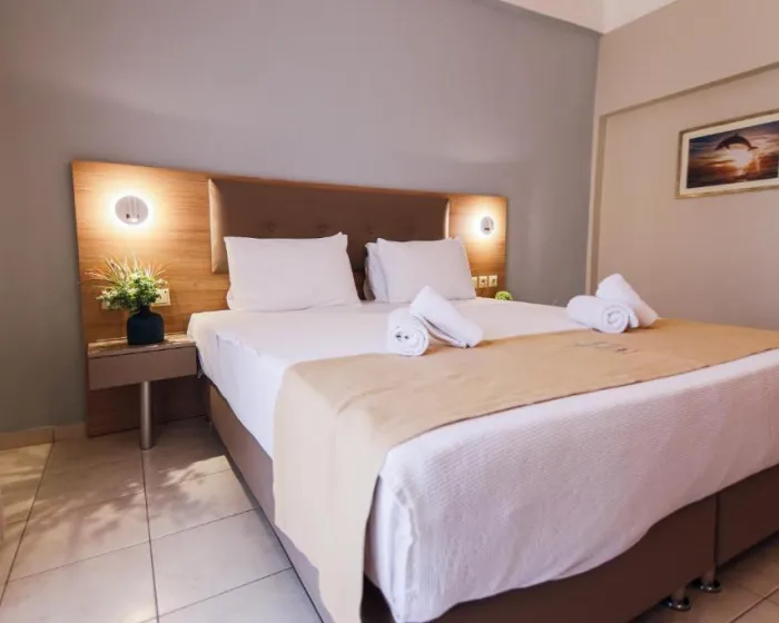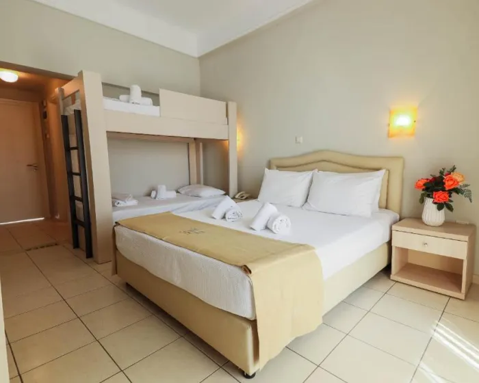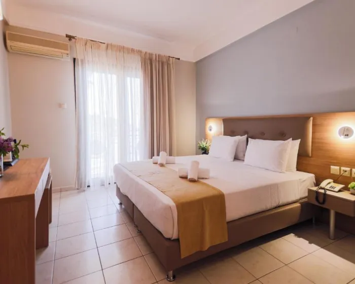 Sobe imaju klima uređaj koji obezbeđuje prijatnu temperaturu. Sve sobe poseduju balkon ili terasu. U sobama se nalazi francuski ili bračni krevet. Vrednosti se mogu čuvati u sefovima. Dodatni sadržaji uključuju frižider i aparat za kafu/čaj. Gostima je na raspolaganju i pegla. Sobe su opremljene telefonom, satelitskom televizijom i besplatnim WiFi internetom. Kupatila sadrže tuš kabinu i kadu, kao i fen za kosu. Za dodatni komfor u kupatilu, obezbeđena su kozmetička sredstva. Hotel nudi porodične sobe pogodne za boravak sa decom.