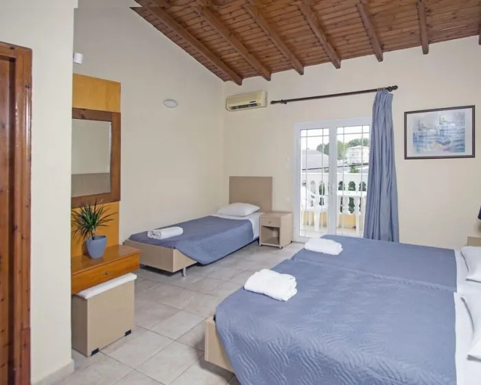 Sobe su opremljene klima uređajem. Gosti mogu da se opuste i uživaju u pogledu na more sa terase ili privatnog balkona nekih soba. Dodatni kreveti mogu biti zatraženi. Mini bar je obezbeđen. Čaj/kafe stanica je dostupna u kuhinji. Takođe su obezbeđeni telefon i WiFi. Kupatila su opremljena tušem. Hotel ima sobe za nepušače.