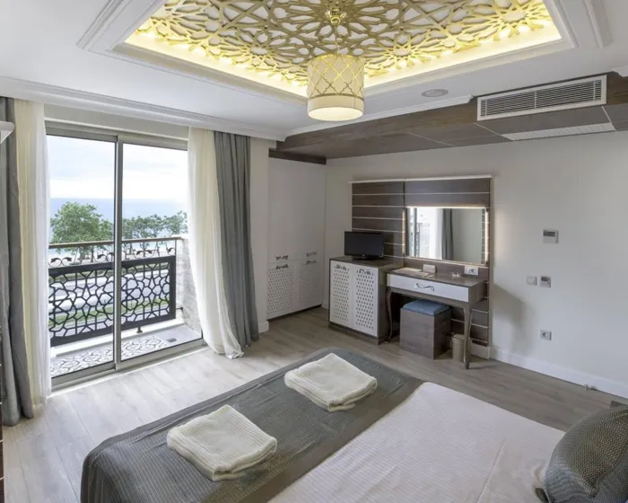 Ovaj hotelski kompleks se nalazi na mirnoj lokaciji direktno pored široke peščane plaže Lara, Antalija.