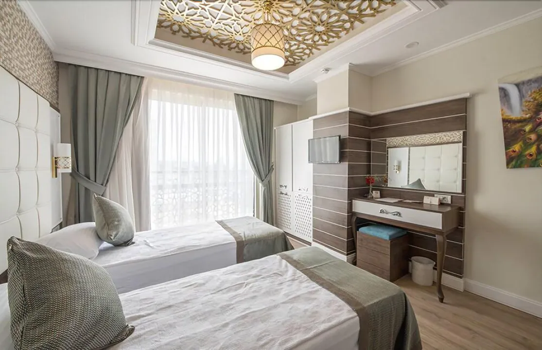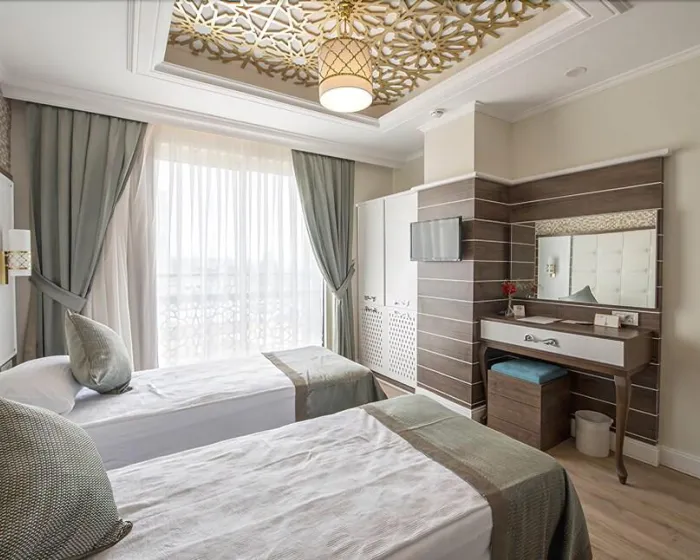 Ovaj hotelski kompleks se nalazi na mirnoj lokaciji direktno pored široke peščane plaže Lara, Antalija.