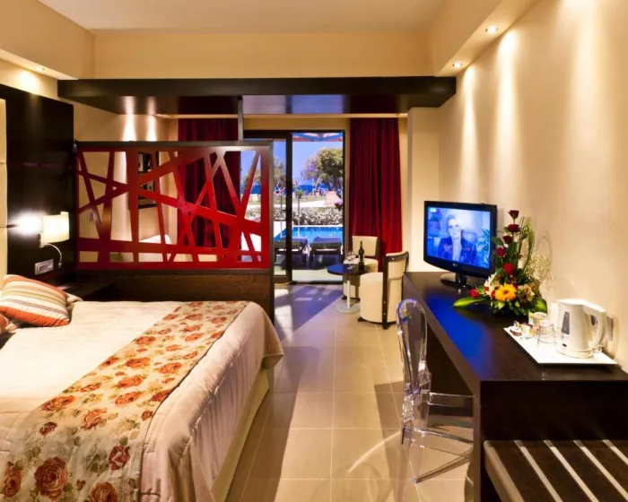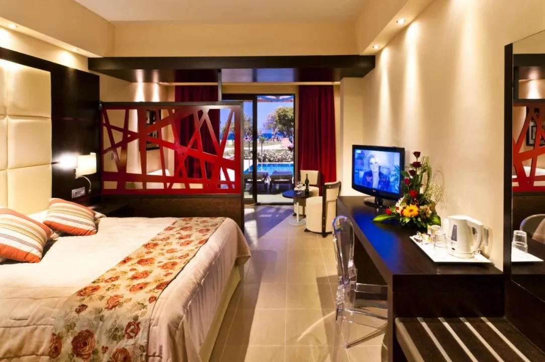 Klima uređaj i centralno grejanje osiguravaju da sobe održavaju udobne temperature. Gosti mogu opustiti i uživati u pogledu na more sa balkona ili privatne terase nekih soba. Sve sobe su popločane i uključuju bračni krevet, krevet queen size, krevet king size ili sofu. Dostupne su odvojene spavaće sobe. Takođe su dostupni sef, minibar i radni sto. Dodatni sadržaji uključuju frižider i aparat za kafu/čaj. Direktno biranje telefona, televizor sa satelitskim/kablovskim kanalima, radio, stereo sistem i WiFi (bez dodatne naplate) pružaju sve neophodno za udoban odmor. Papuče su uključene. Kupatila su opremljena tušem, kadom i hidromasažnom kadom. Fen za kosu i bade mantili su obezbeđeni. U kompleksu postoje sobe za nepušače.