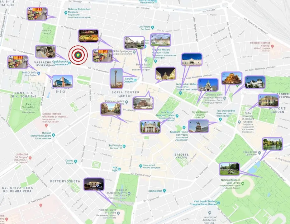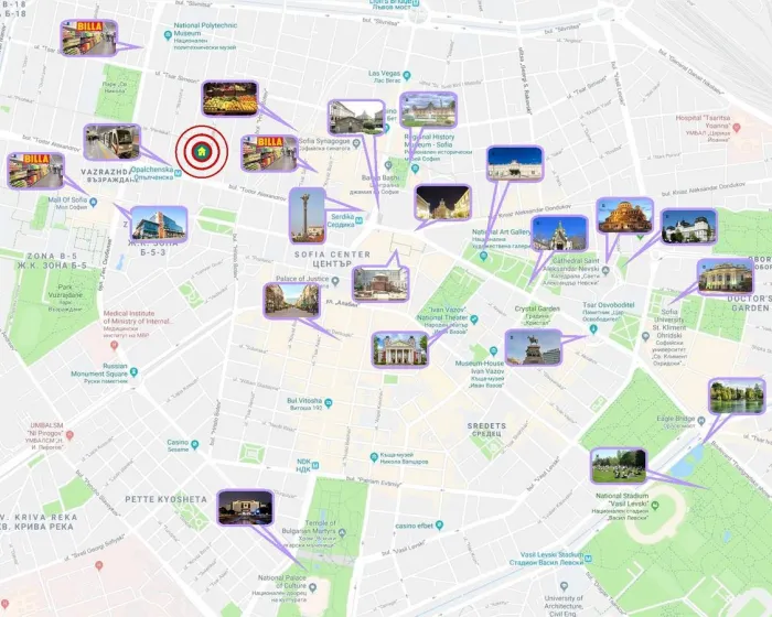 Popularne tačke interesovanja u blizini Jedinstvenog Luksuznog PENTHOUSE DUPLEX-a sa đakuzijem u Centru grada! 2 KUPATILA! BESPLATNO PARKIRANJE! uključuju Predsedništvo, Ivan Vazov Teatar i Glavnu Železničku Stanicu u Sofiji. Najbliži aerodrom je Aerodrom Sofija, udaljen 8 km od smeštaja. Ova nekretnina neće primiti gošće koji dolaze na momačko veče, devojačko veče ili slične zabave.