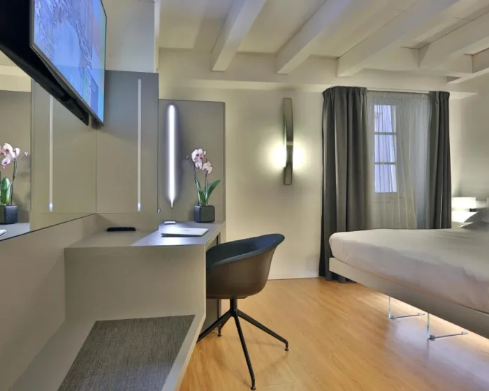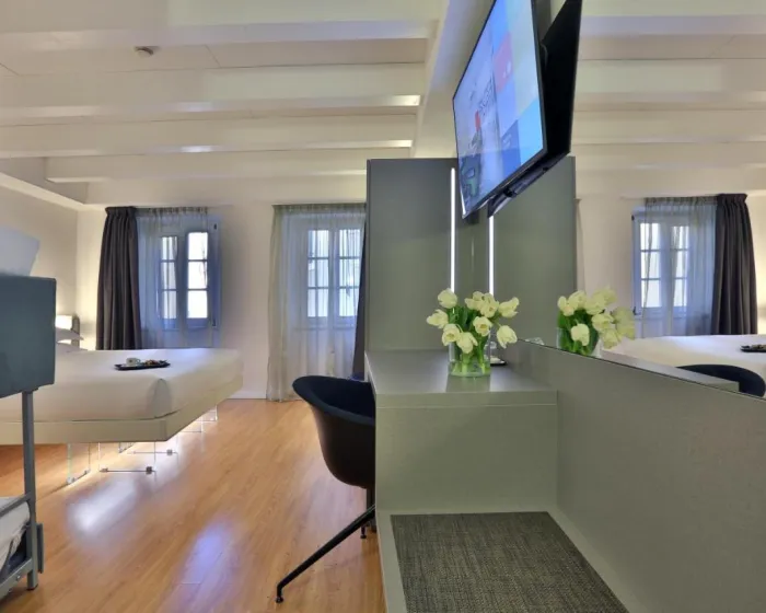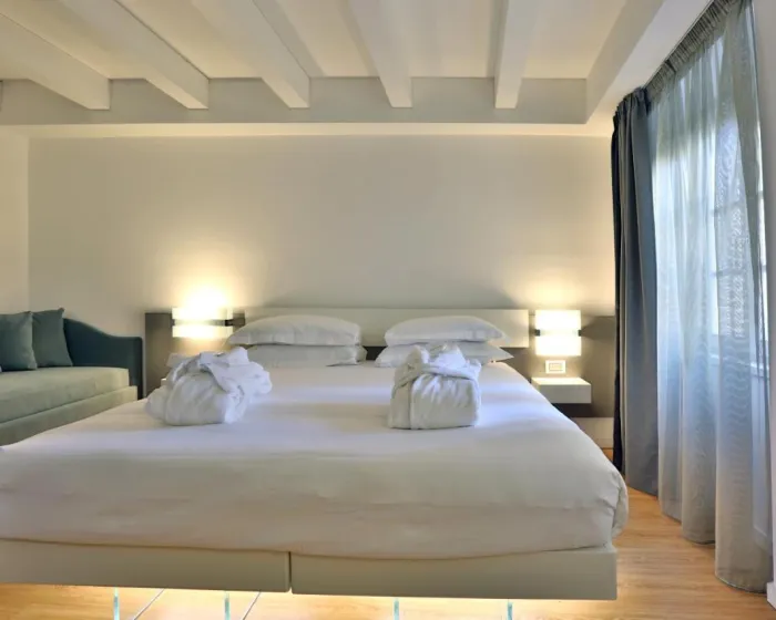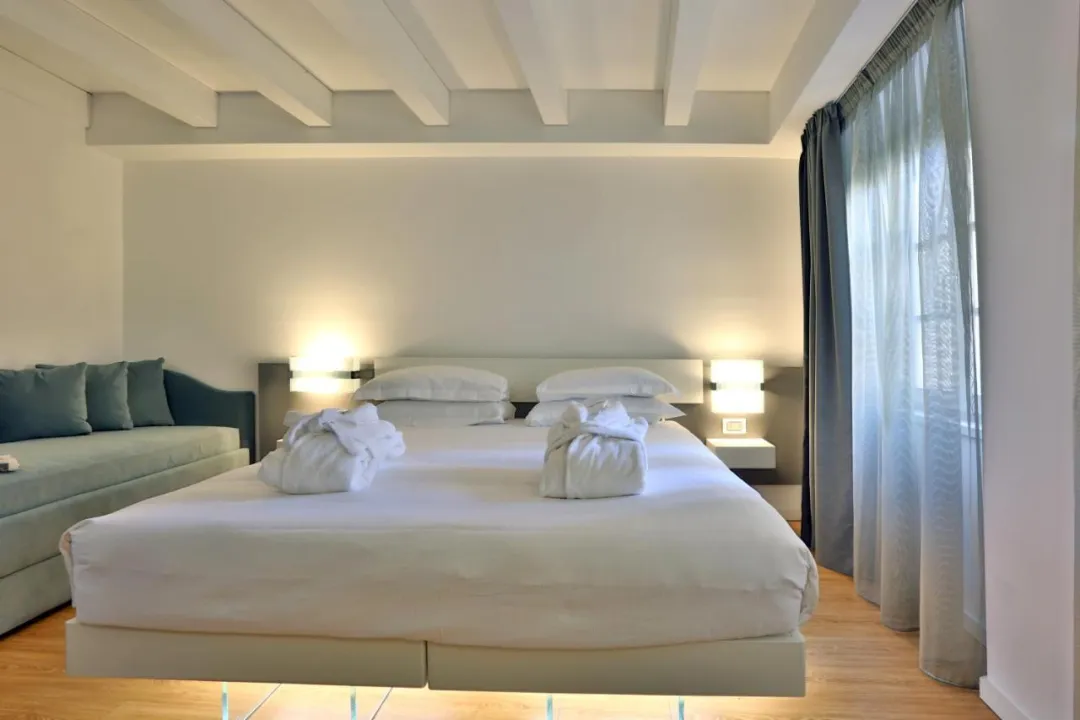 Sobe su opremljene klima uređajem i centralnim grejanjem. Sobe imaju bračni krevet ili krevet king size. Dodatni kreveti se mogu zatražiti. Takođe su dostupni sef, minibar i radni sto. Takođe se pruža telefon, satelitska televizija i WiFi (bez dodatne naknade). Papuče su uključene. Kupatila su opremljena tuš kabinom, kadom i bideom. Fen za kosu i telefon su dostupni za svakodnevnu upotrebu. Mogu se rezervisati sobe prilagođene osobama u invalidskim kolicima. Hotel ima porodične sobe, nefume sobe i sobe za pušače.