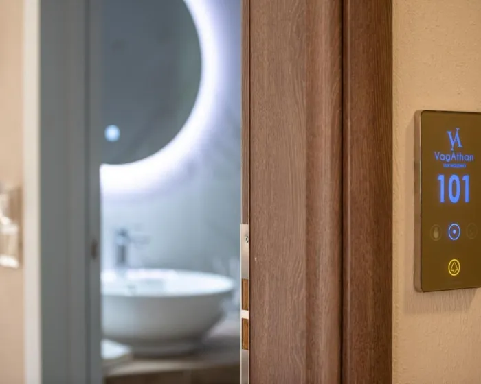 Objekti su pažljivo dizajnirani tako da se uklope u prirodni ambijent, koristeći autentične materijale i elemente koji odražavaju duh lokalne arhitekture, ali sa savremenim pristupom udobnosti i estetici. Svaka vila i apartman u sklopu Vagathan – Lux Holidays nudi prostrane i svetle enterijere, sa luksuznim spavaćim sobama, moderno opremljenim kupatilima, potpuno funkcionalnom kuhinjom, elegantnim dnevnim boravkom i privatnim spoljnim prostorima – terasama, balkonima ili baštama sa prelepim pogledom. Neke jedinice uključuju i privatni bazen, jacuzzi ili rooftop terasu, idealnu za opuštanje uz zalazak sunca. Svi objekti poseduju klima uređaje, smart TV, Wi-Fi, sef, mašinu za veš i druge sadržaje neophodne za duži i bezbrižan boravak.