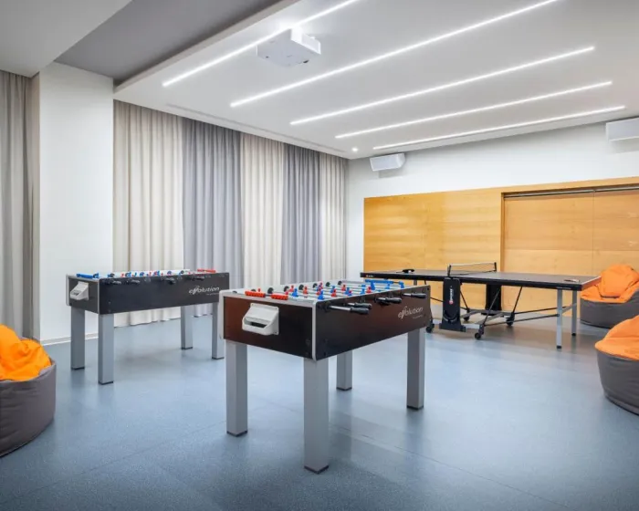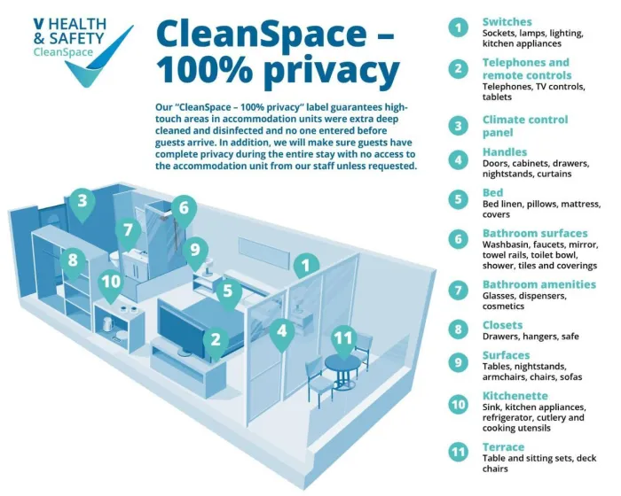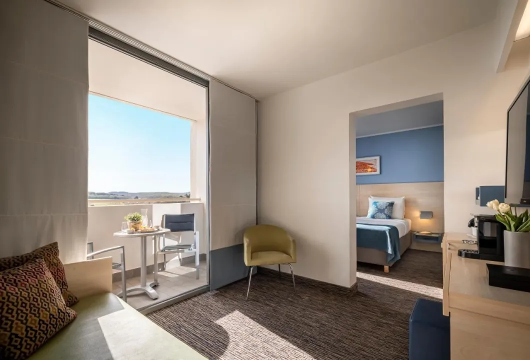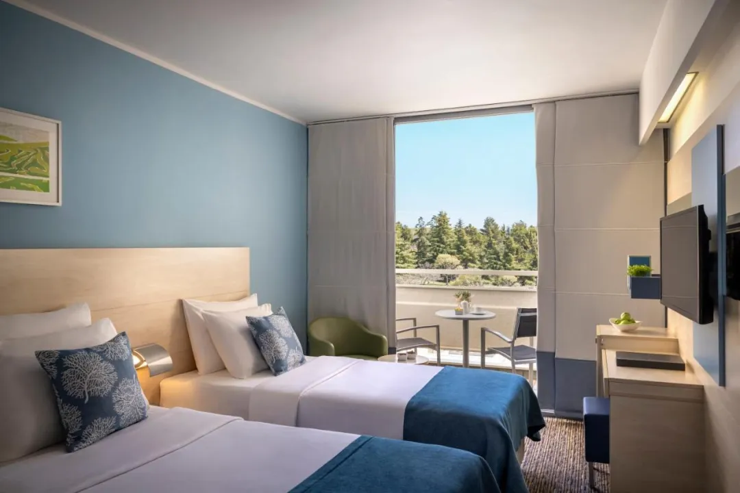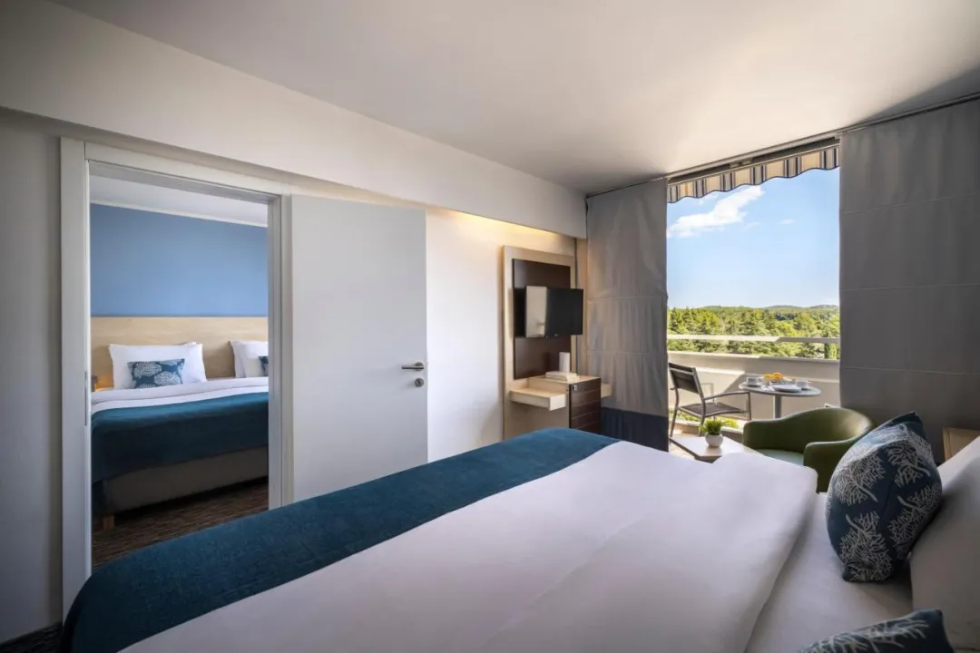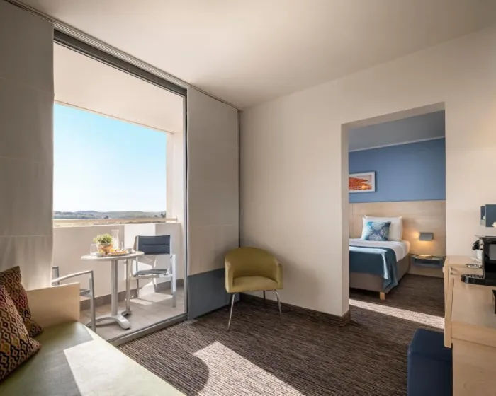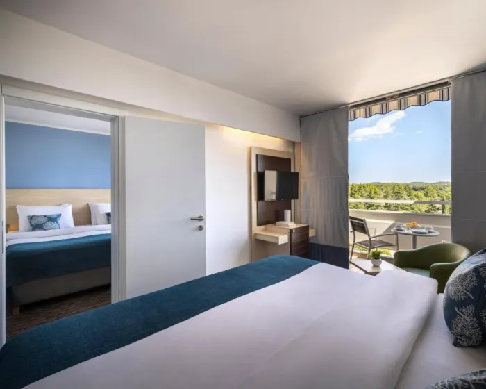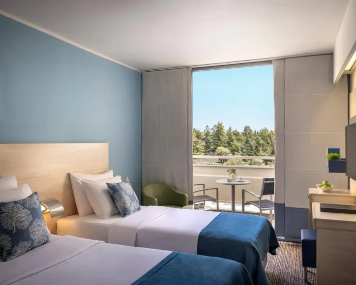Klima uređaj i centralno grejanje osiguravaju da sobe održavaju udobne temperature. Gosti mogu da se opuste na balkonu ili terasi. Sve sobe su popločane i imaju bračni krevet, krevet queen size ili sofu na razvlačenje. Kreveti za decu i dodatni kreveti mogu se zatražiti za mlađe goste. Sef, minibar i radni sto su takođe dostupni. Dodatni sadržaji uključuju frižider, mikrotalasnu pećnicu i mašinu za pranje sudova. Direktni telefonski poziv, televizor sa satelitskim / kablovskim kanalima i WiFi (bez dodatne naplate) pružaju sve neophodno za udoban odmor. Kupatila su opremljena tušem i fenom za kosu. Kao poseban dodatak, kupatila su opremljena i kozmetičkim proizvodima i izborom peškira. Gosti takođe mogu rezervisati sobe prilagođene za invalide sa prilagođenim kupatilima za invalide. Hotel ima porodične sobe i sobe za nepušače.