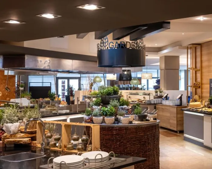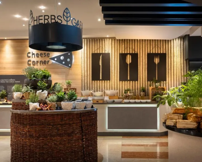 Različite opcije za obroke su dostupne, uključujući restoran sa klima uređajem, trpezariju, trpezariju za doručak, kafić i bar. Polupansion se nudi kao opcija ishrane. Obilan doručak na bazi švedskog stola, ručak i obilan večernji bife nude obilje ukusne raznovrsnosti. Dijetetski obroci, bezglutenski obroci i vegetarijanska jela mogu se pripremiti na zahtev. Hotel takođe nudi posebne opcije ishrane. Show cooking je posebna atrakcija. Bezalkoholna pića su dostupna.