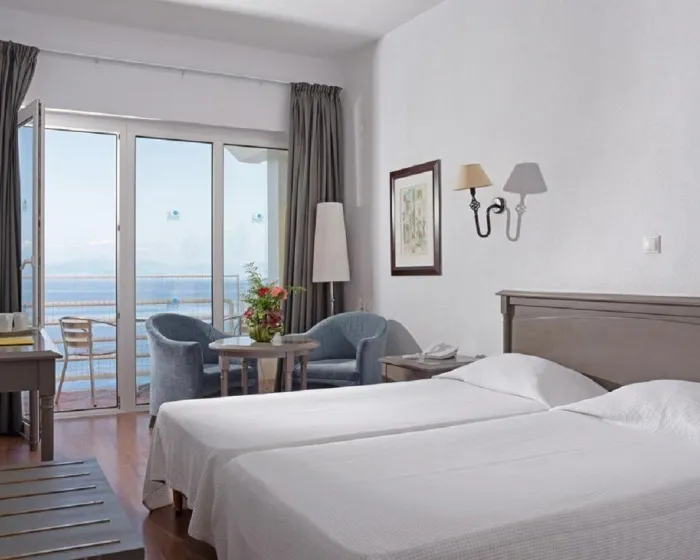 Klima uređaj osigurava da sobe održavaju idealnu temperaturu. Većina jedinica uključuje balkon sa pogledom na more, gde gosti mogu odmarati i uživati. Sobe su opremljene bračnim krevetom. Dostupne su odvojene spavaće sobe. Dečiji kreveti mogu biti obezbeđeni besplatno na zahtev. Sef, minibar i radni sto takođe su na raspolaganju. Dodatne funkcije uključuju frižider, mini frižider i aparat za kafu/čaj. Direktno biranje telefona, televizor sa satelitskim/kablovskim kanalima, radio i WiFi (bez dodatne naplate) obezbeđuju sve neophodno za udoban odmor. Gosti će pronaći i papuče u svojim sobama. Kupatila su opremljena tušem i kadom. Fen za kosu, šminkersko ogledalo i bade mantili dostupni su za svakodnevnu upotrebu. Hotel ima porodične sobe i sobe za nepušače.