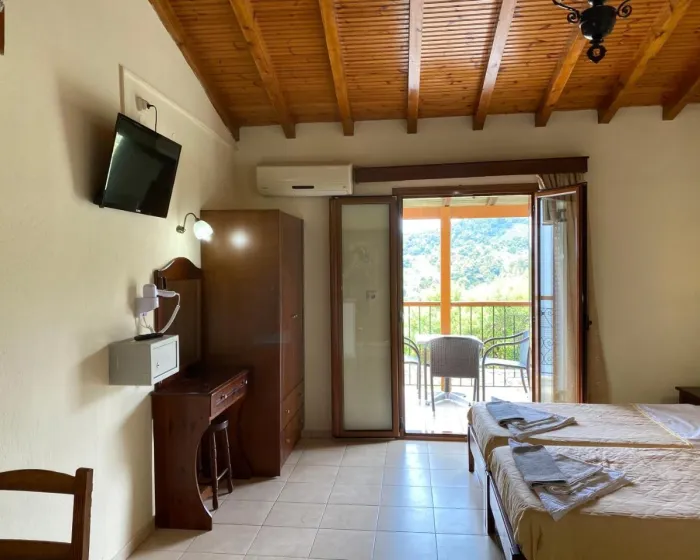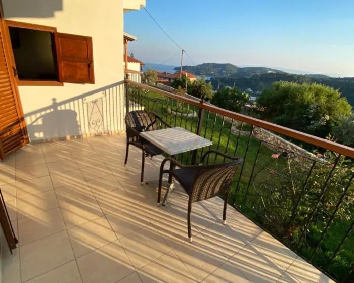 Plaža Achladies je manje od 1 km udaljena od apartmana, dok je plaža Megali Ammos udaljena 15 minuta hoda. Najbliži aerodrom je Aerodrom Skiathos, udaljen 5 km od Valmas sela. Upravlja privatni domaćin.