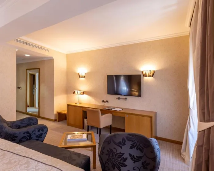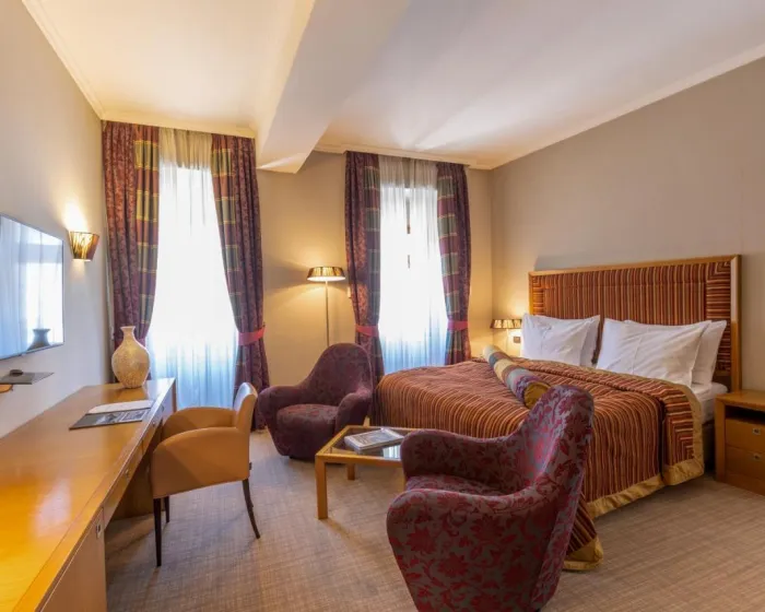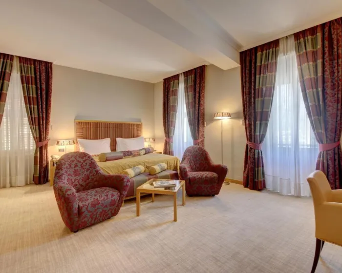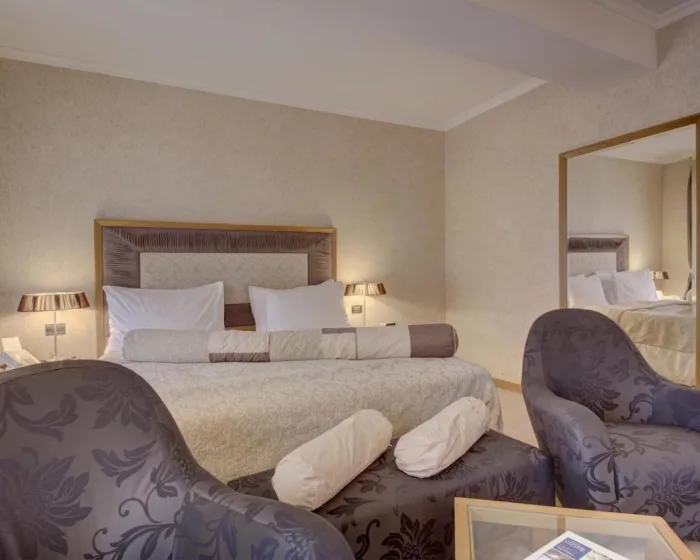 Klima uređaj i centralno grejanje obezbeđuju da sobe održavaju prijatne temperature. Sobe sadrže krevet veličine king-size. Dodatni kreveti mogu biti zatraženi. Mini bar i radni sto su takođe dostupni. Pegla je obezbeđena radi gostima. U sobama se nalazi telefon, televizor sa satelitskim kanalima i WiFi (bez dodatne naknade). Kupatila uključuju fen za kosu i opremljena su tušem i kadom. Hotel ima porodične sobe i sobe za nepušače.