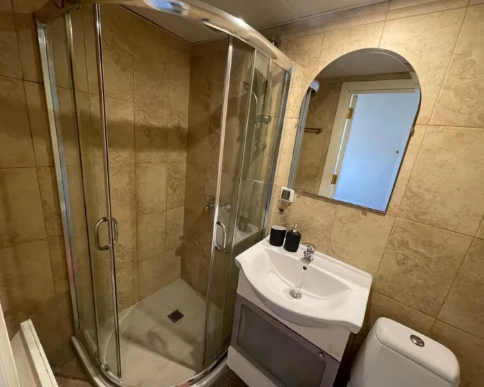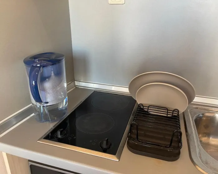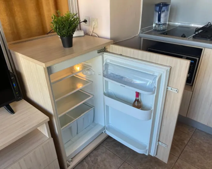 Klimatizovan stan se sastoji od 1 spavaće sobe, dnevnog boravka, potpuno opremljene kuhinje sa mikrotalasnom pećnicom i aparatom za kafu, i 1 kupatila sa tušem i papučama. Peškiri i posteljina su obezbeđeni u apartmanu. Radi dodatne privatnosti, smeštaj ima privatni ulaz.